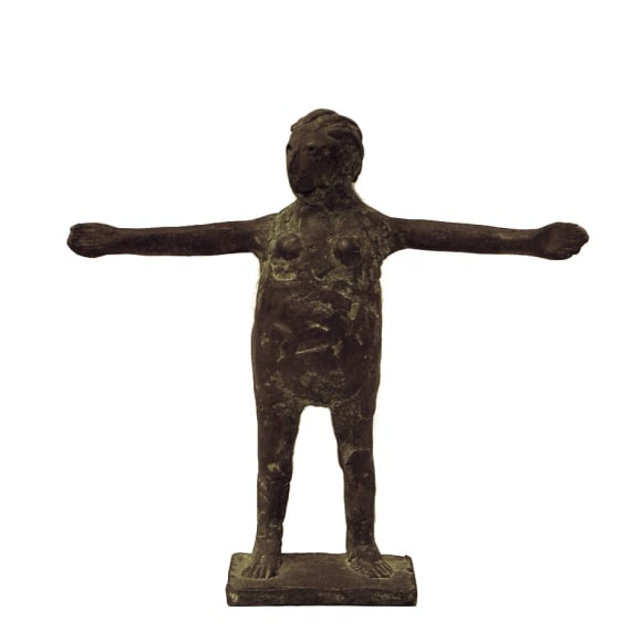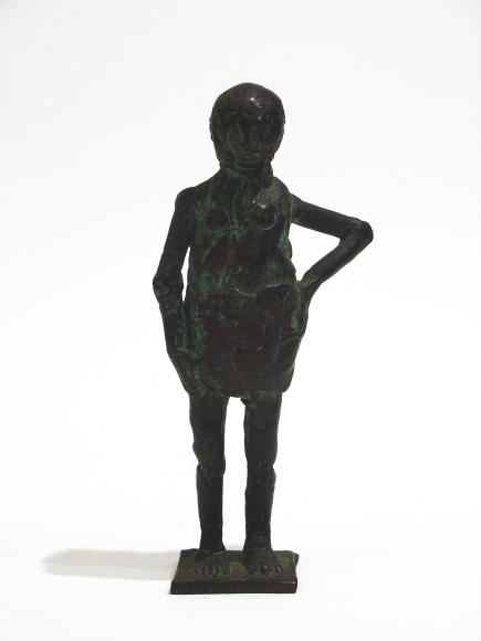 Louise Kruger was born in Los Angeles in 1924. She attended Scripps College in California and the Arts Students League in New York, but three subsequent apprenticeships played a formative role in her arts education: the study of woodworking and joinery, with a ship builder in New Jersey, and traditional metal-working techniques, at foundries in Pistoia, Italy and Kumasi, Ghana. It was during her residency in Pistoia, from 1957–58, that Kruger produced many of the bronze works on exhibit.