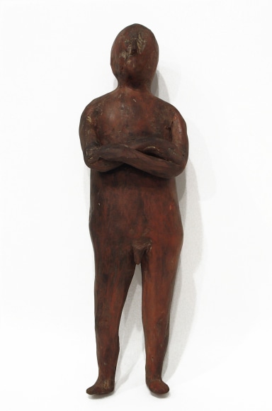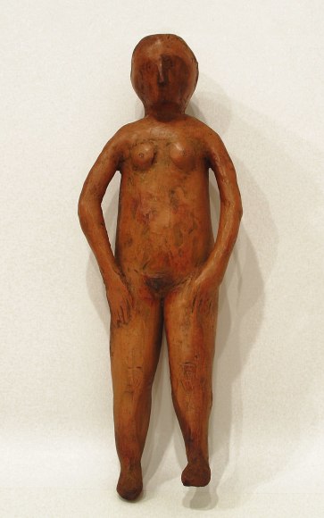 While past exhibitions have focused largely on life-size wood works Kruger made throughout her career, her achievement in other mediums is demonstrated in the 19 works here on display. Ranging in size from a four-inch tabletop figurine to a five-foot tall free-standing bronze, the sculptures showcase Kruger's exceptional ability to move fluidly between various scales.