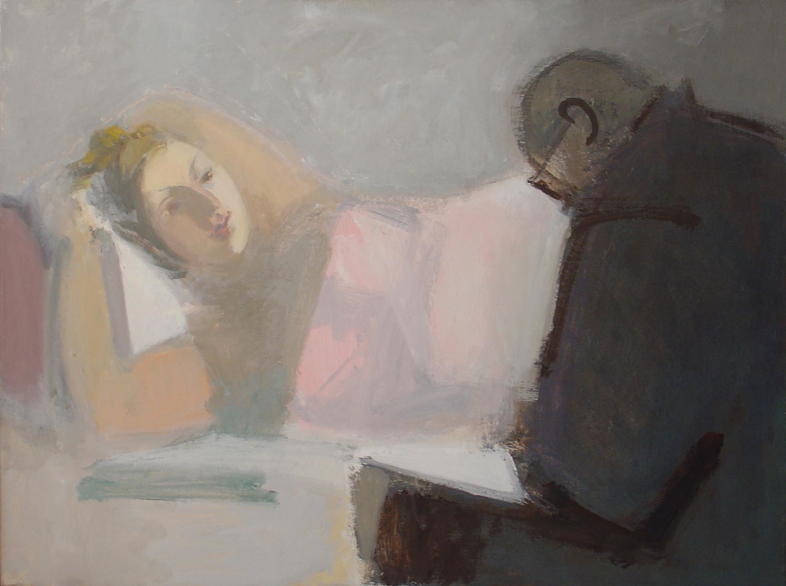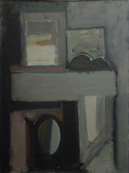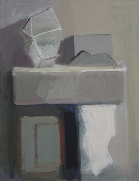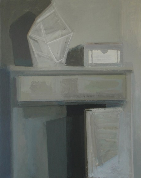 An inveterate observer of still life arrangements and interior spaces, Phillips tends to revisit a specific installation or view multiple times, sometimes working from it for years at a stretch. This constancy of subject matter, along with stringent restrictions of palette, makes the variations of mood the artist achieves all the more studied and remarkable. Phillips works for the most part in subtle shades of gray, but her able manipulations of warm and cool, and small infusions of color, are employed to maximum effect.