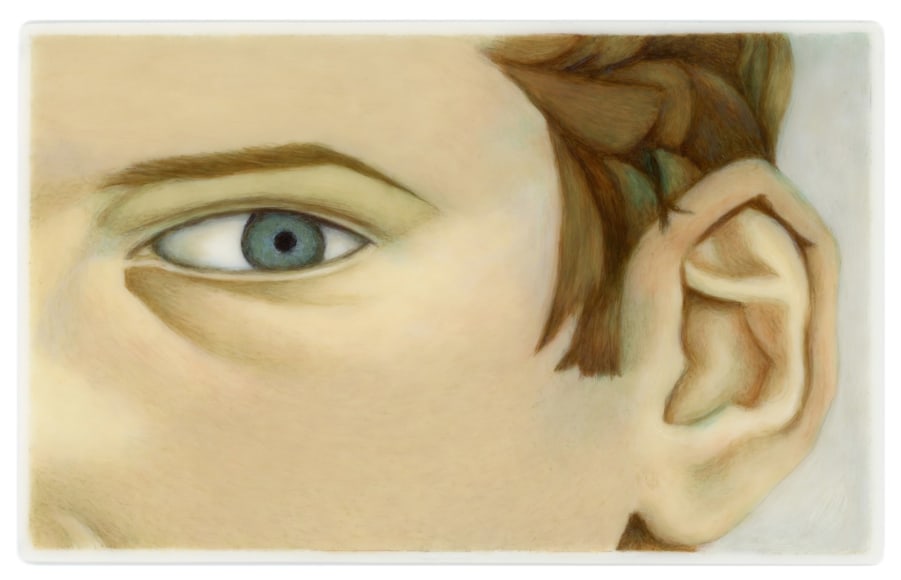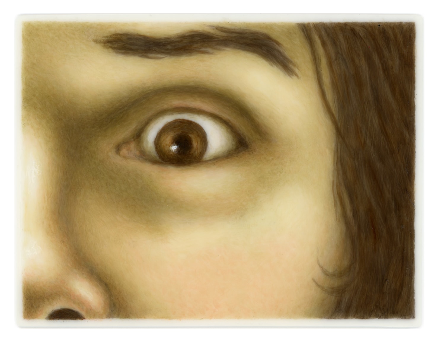 This group of Selfies is the fifth series of appropriated eye paintings I’ve done, playing once again on the 18th century tradition of eye portraiture, often referred to as Lover's Eyes. Though the intent of my earlier eye paintings was to reverse the gaze from that of the original artist to the gaze of the model, I have never felt so closely observed in my studio as I have with this wall of artist's eyes staring back at me. I can't help but imagine that the gazes I’ve resurrected are somewhat mystified to see me, rather than their own reflections looking back at them. And yet it is the very way these eyes hover between a communion with the self and with an imagined viewer (and indeed posterity) that gives them their haunting power.