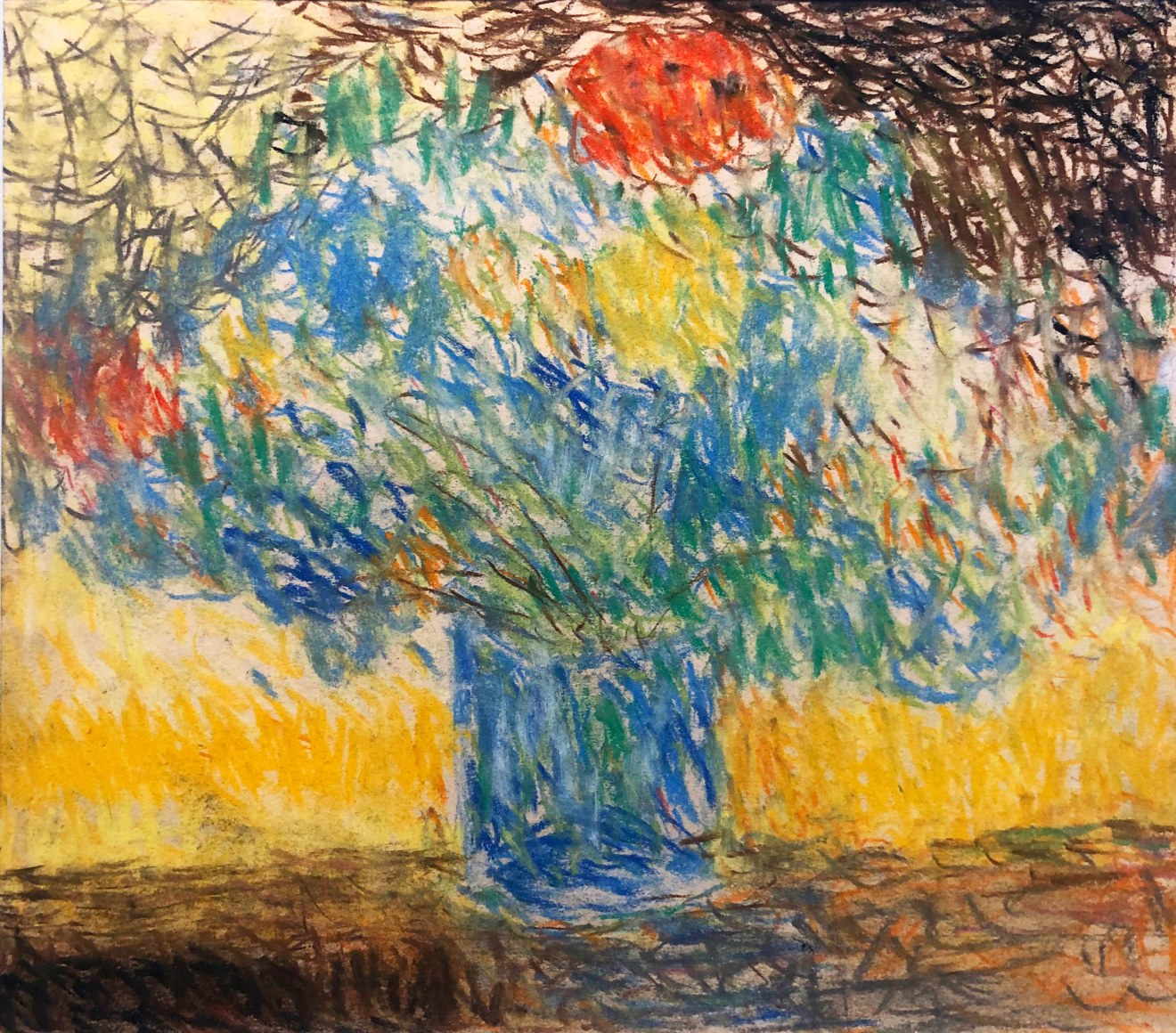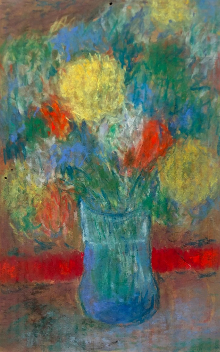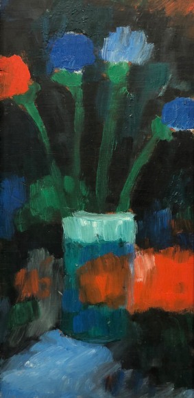 This exhibition will be comprised of both paintings and works on paper which depict still lifes of flowers. While the artist is perhaps best known for his early mosaic paintings and his late figurative work of mythological subjects, the artist also painted flowers and landscapes throughout his short career. First appearing in the mid-fifties, they serve as a bridge from the non-objective painting to figuration. Thomas Messer, in the catalog essay for Müller’s retrospective in 1962 at the Solomon R. Guggenheim Museum, refers to the artist’s still life paintings as “lyric poetry,” noting that in these transitional paintings, “forms begin to arrange themselves in a way that clearly announces the figurative element in the making. Cautiously, almost as if engaging in forbidden games, Müller allows the recognizable motif to emerge from within the abstract pattern.” [i]
