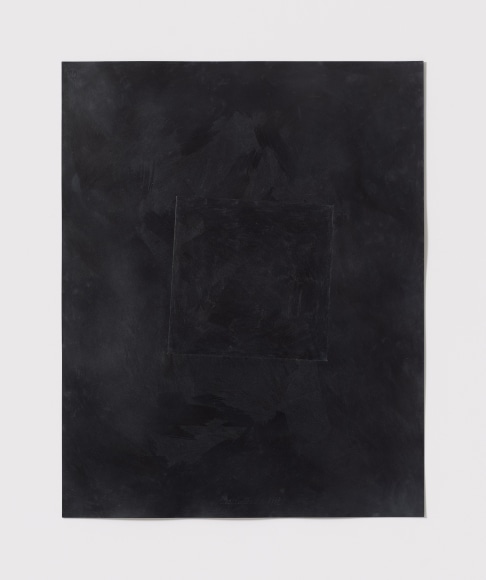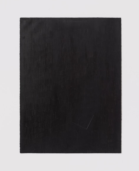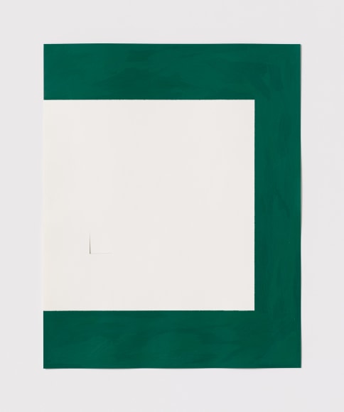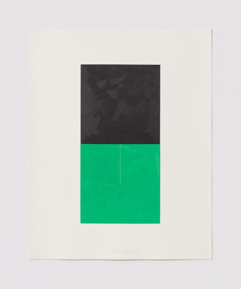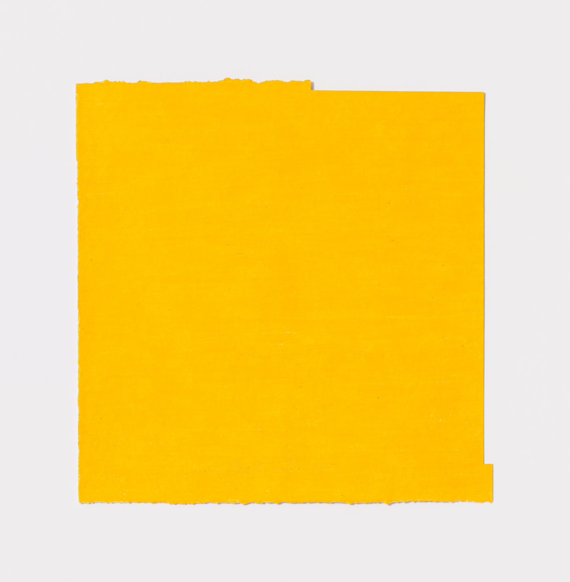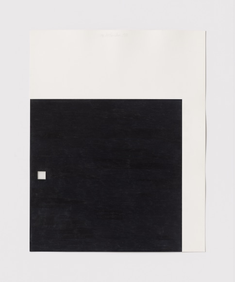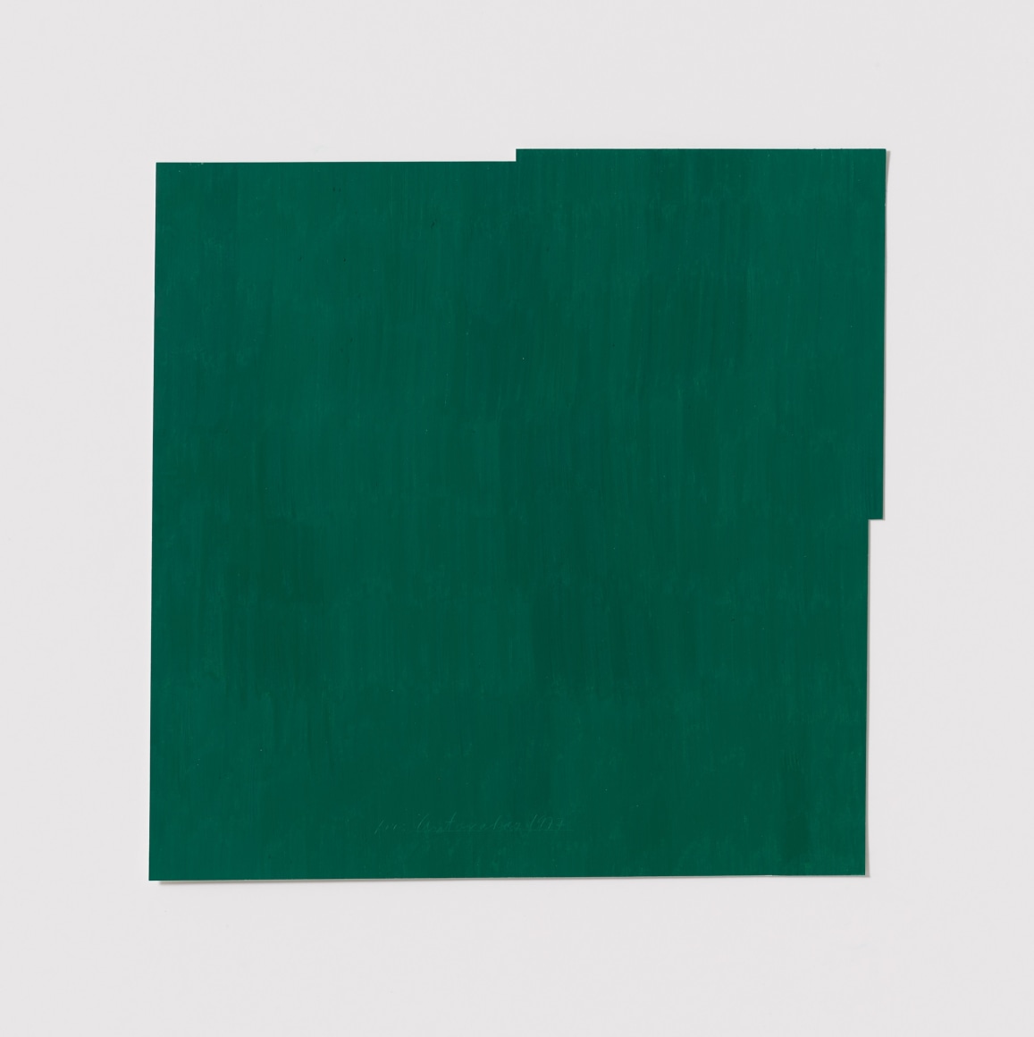 In the summer of 2014 a brilliant group of previously unknown drawings — Cuts — were found in storage. Each surface was thickly covered all over with Antonakos’s characteristic “back-and-forth” color hatching — in deep tones of blue and green, a few red, and one yellow. On some, severe incomplete circles were then cut through the surface; on others, incomplete squares. From still others, incomplete squares were cut from the edges. Each one is marked with the month and year, showing the speed and intensity — apparently the urgency — he felt in covering the surfaces so actively, so more-than-completely. The discovery of this distinct early series adds a lush, concrete chapter to the already rich story of Antonakos’s Cuts from 1977 and 1978. (Antonakos continued with Cuts steadily through 2012 in the forms of drawings, collages, and Artist’s Books — on a range of papers and vellums and gold-leaf on Mylar.)