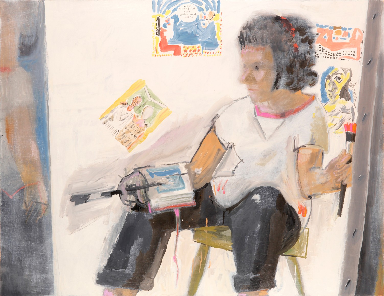 For the last three years, Elena Sisto's paintings have explored the formative years of young women artists. Three-quarter profiles of women against the backdrop of the studio or partially hidden behind the canvas provide a portal into the psychology of a unique cast of characters. Though certainly abstracted into cartoonish guises, Sisto's figures still maintain unique personalities and dispositions that hint at the possibility of narrative.