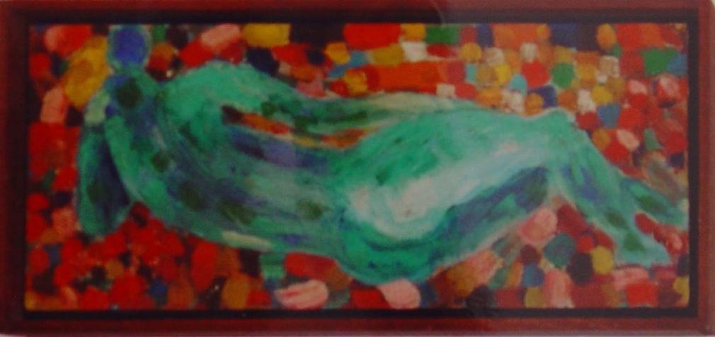 Jan Müller [1922-1958] Untitled (Blue Nude) c. 1953-54 Oil on board 7 x 16 ½ inches (LBFA #2515)
