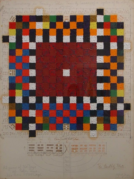 Signed, dated and titled lower right: "The Earthly Plate / Alfred Jensen / Jan 10 1973"