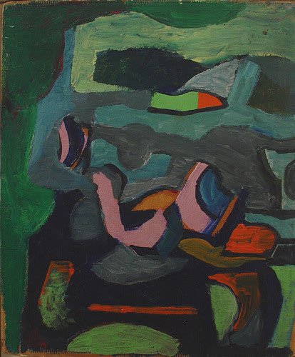 Nell Blaine [1922-1996] Little Fish Abstraction 1948 Oil on panel 10 ¼ x 8 ¾ inches Signed on reverse (LBFA #785)