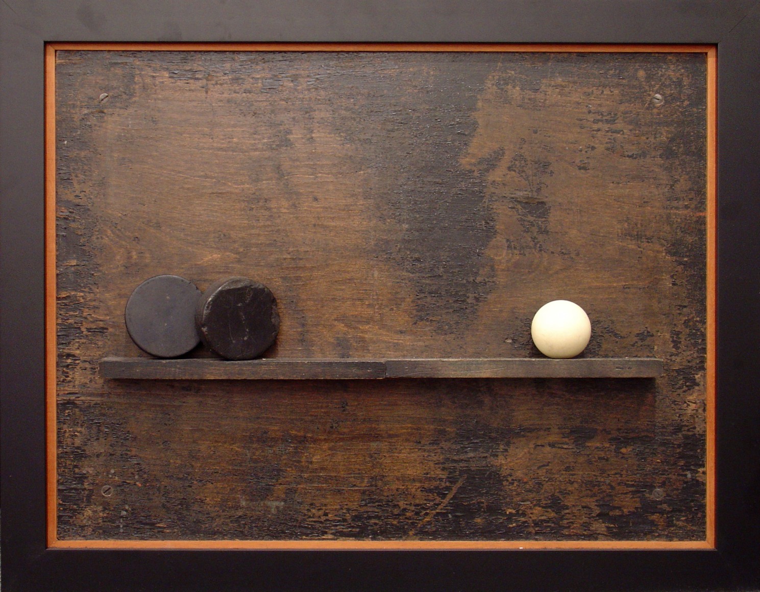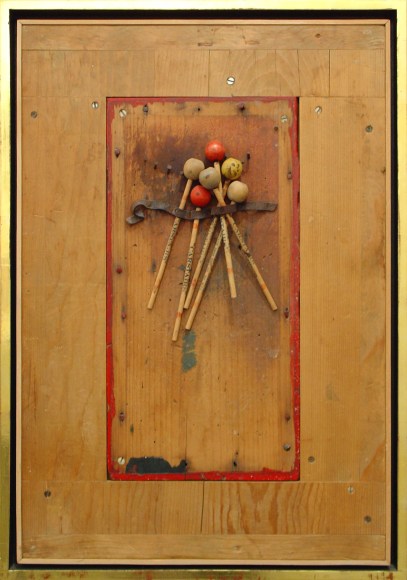 A lifelong collector, Boghosian’s studio is a veritable trove of old children’s toys, antiquated tools and oddball objects, a palette composed not of paint but of parts and scraps scavenged from constant trips to flea markets and antique stores. His working method is characterized by the various roles of selector, editor, builder, juxtaposer. The artist’s collages, like his relief constructions and boxes, cherish the out-dated and the cast-off and revitalize them with new meaning, contemporaneity and aesthetic value.