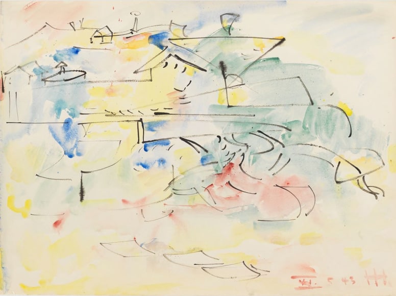 Hans Hofmann (b. 1880 Weissenburg, Germany – d. 1966, New York, NY) began his art education in Munich before moving to Paris in 1904. While in Paris, Hofmann frequented the Café du Dome where he met the many artists, dealers, and intellectuals who gathered there. It was during this time that Hofmann took drawing classes at the Académie de la Grande Chaumière and the Académie Colarossi, and was introduced to Matisse, Picasso, and Braque. While on a visit home to Germany in 1914, the outbreak of World War I prevented Hofmann from returning to Paris, so in 1915 he opened his own art school in Munich, which quickly garnered an international reputation of excellence. In 1930, Hofmann traveled to the United States, and from 1930 to 1932 he was invited to teach at the University of California, Berkeley, and at the Chouinard School of Art in Los Angeles.
