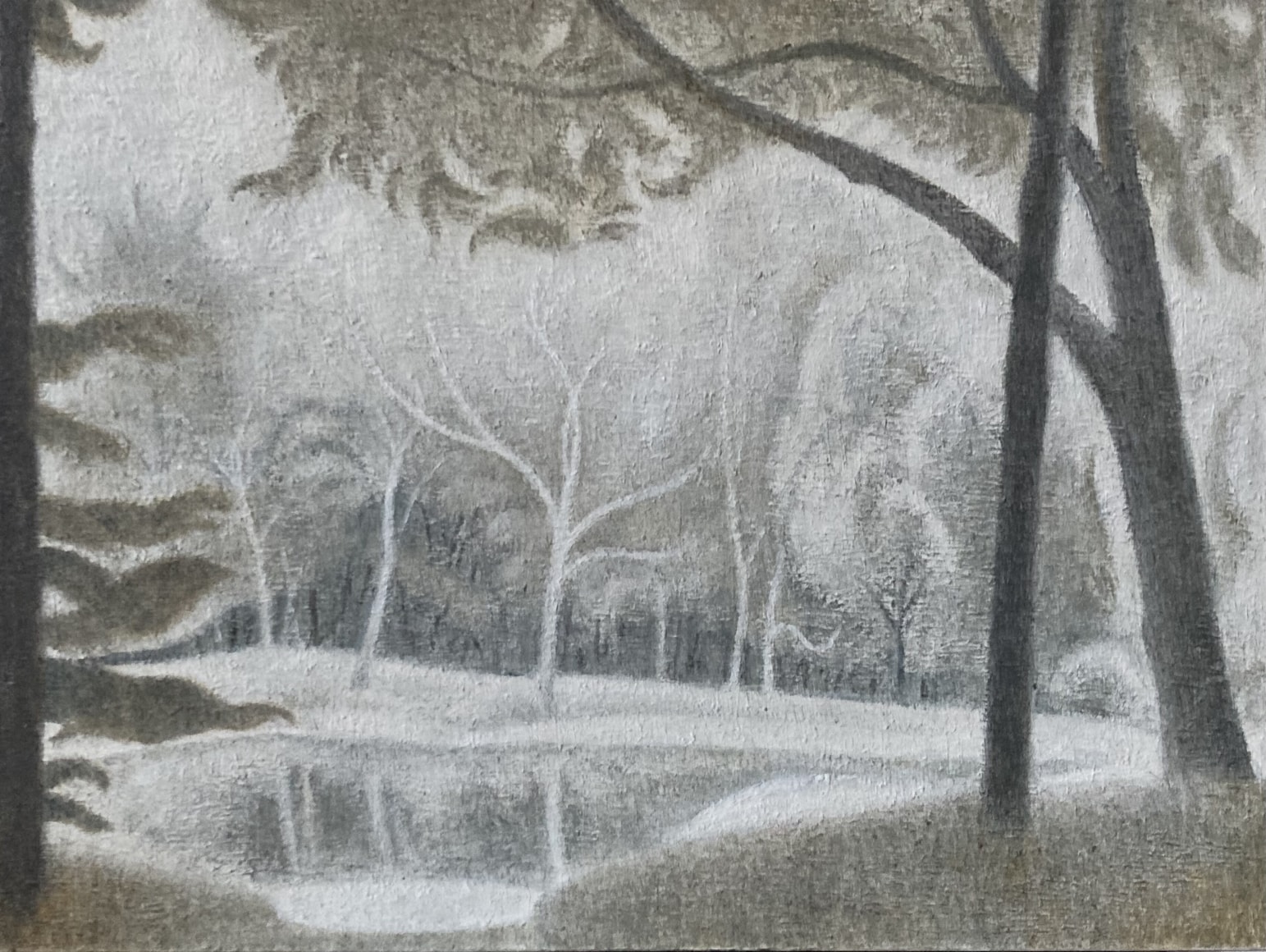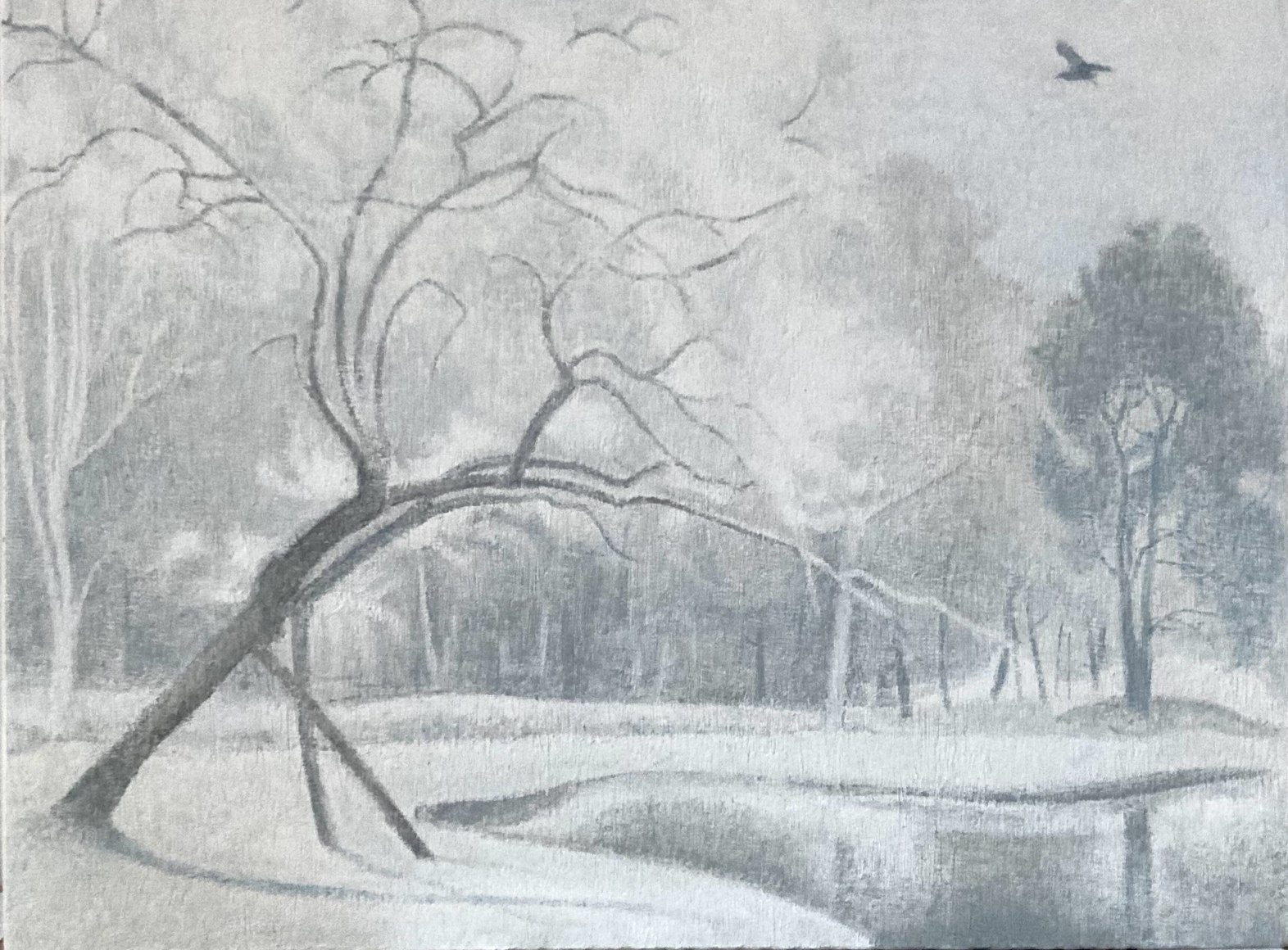 Ron Milewicz Ashes Across the Pond 2025 Oil on panel 7 1/2 x 10 inches (BP#RMi-9637)