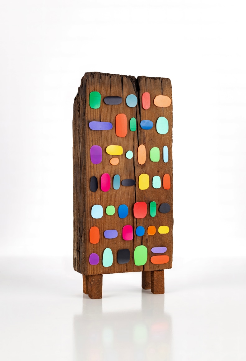 Over a career spanning more than four decades, Magee has experimented widely with abstract and conceptual art practices. Magee’s compositions are organizations of shapes that have been informed by personal history, numerology, and language. Re-purposing a variety of found and collected media characterizes his sculpture and collage while his paintings explore language symbolically with an emphasis on repetition and reiteration and nods to art historical precedents.
