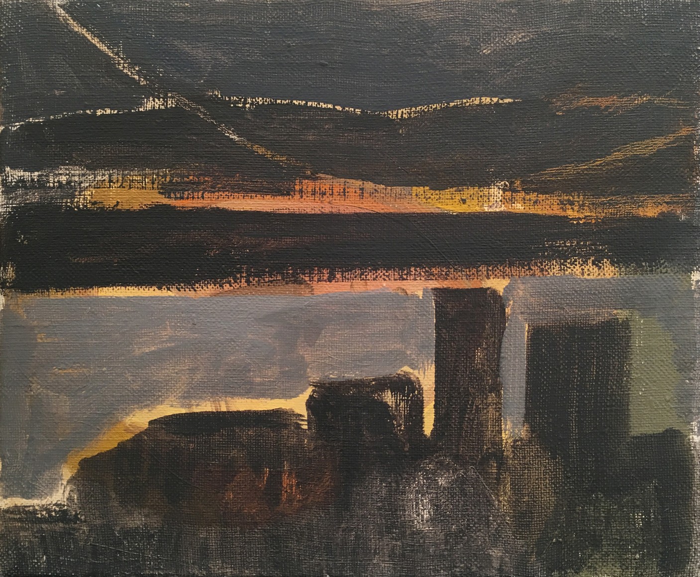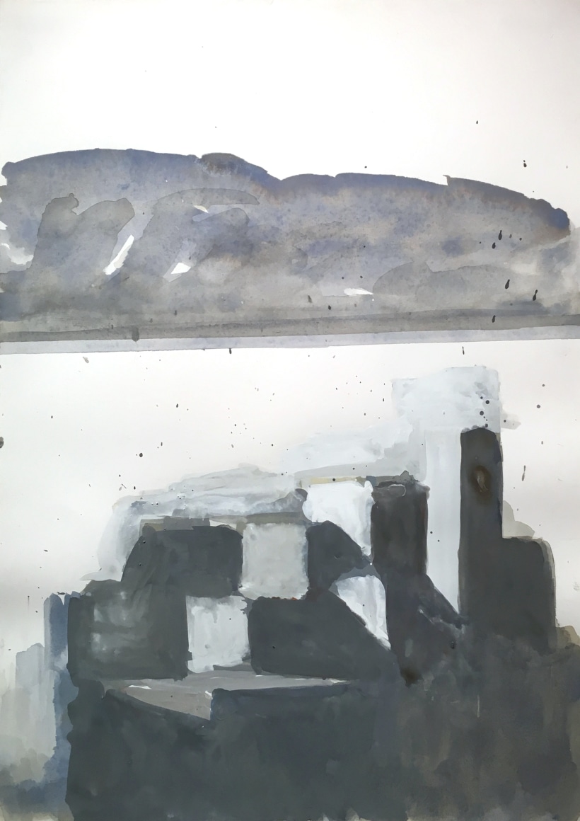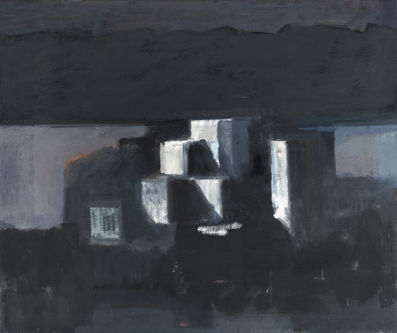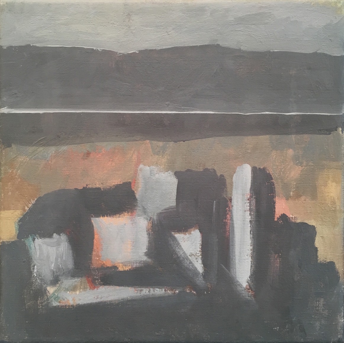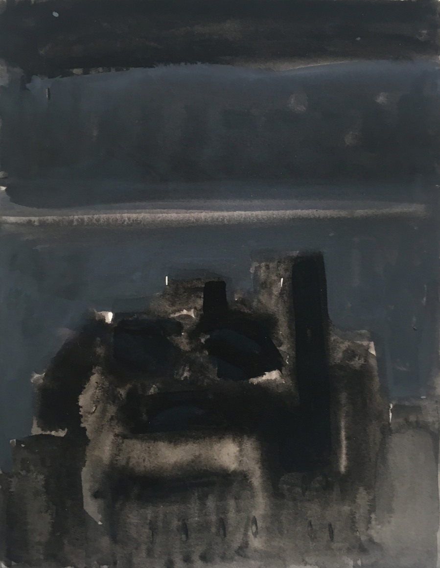 This latest body of work continues Phillips exploration of variations on single themes. The motif for the paintings in this exhibition is drawn from the view of the Hudson River as seen from the artist’s studio in Washington Heights. Abstracted views of rooftops frame the lower margin of the composition, while bands of broken color define the Hudson River, New Jersey and sky above it. Occasionally, the George Washington Bridge makes an appearance. Painted in an infinite lexicon of blacks, greys and taupes, there is a rich coloration that sits just beneath the surface of her paintings. Cool pinks, buttery yellows and prismatic blues reveal themselves beneath her seemingly monochromatic palette, adding a rich complexity to what may otherwise be described as austere.