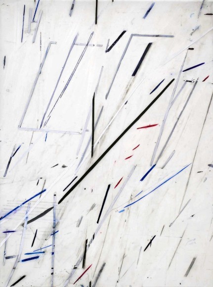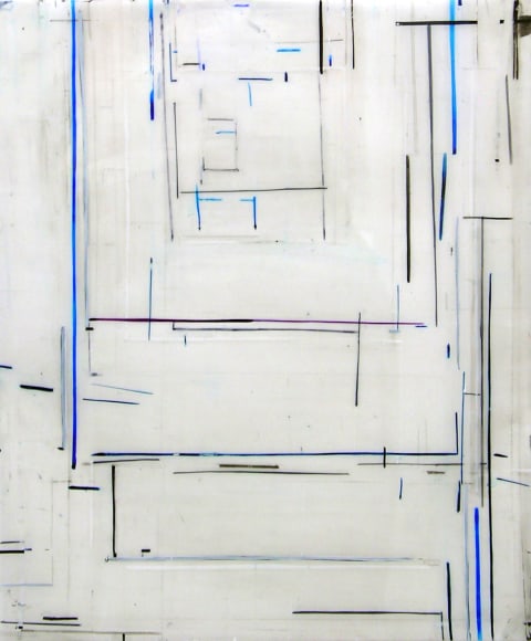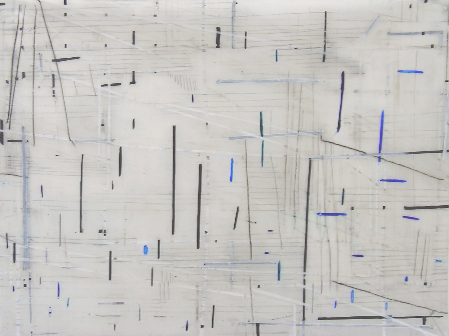 Gesso, black gesso, ink and graphite on Duralene Mylar