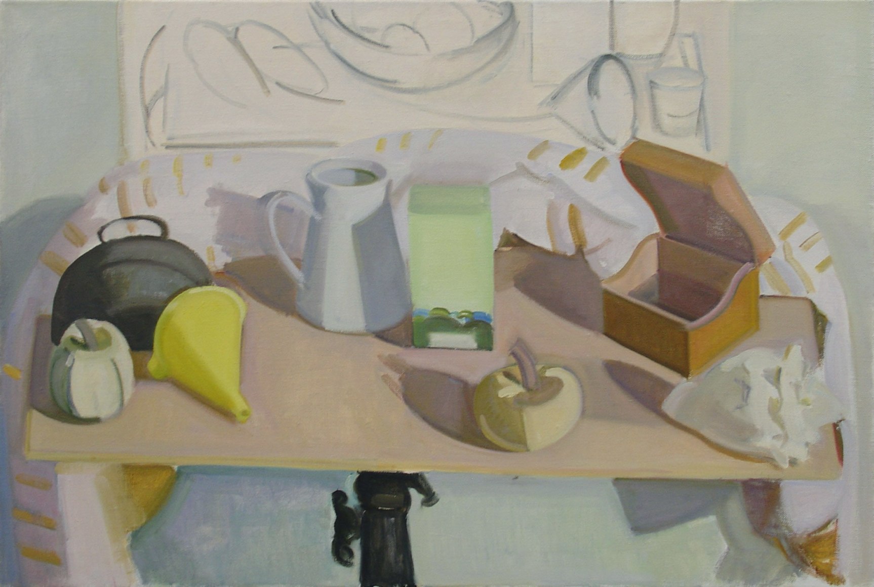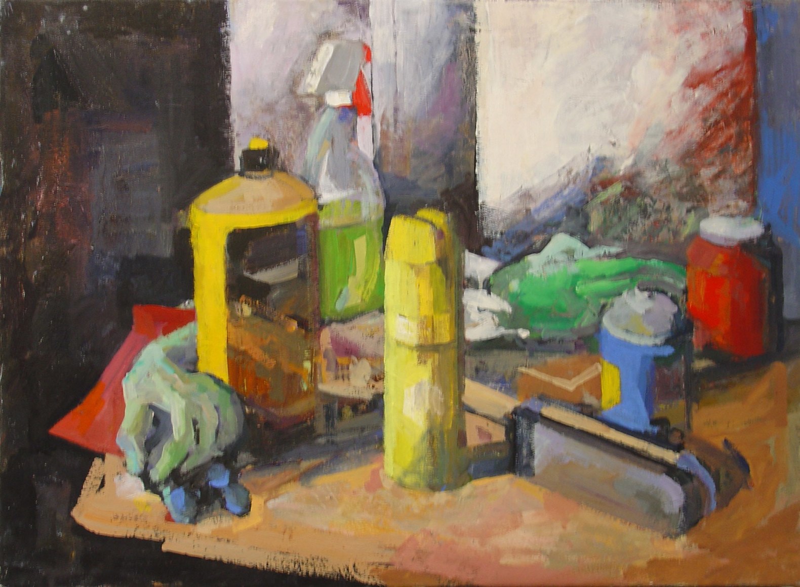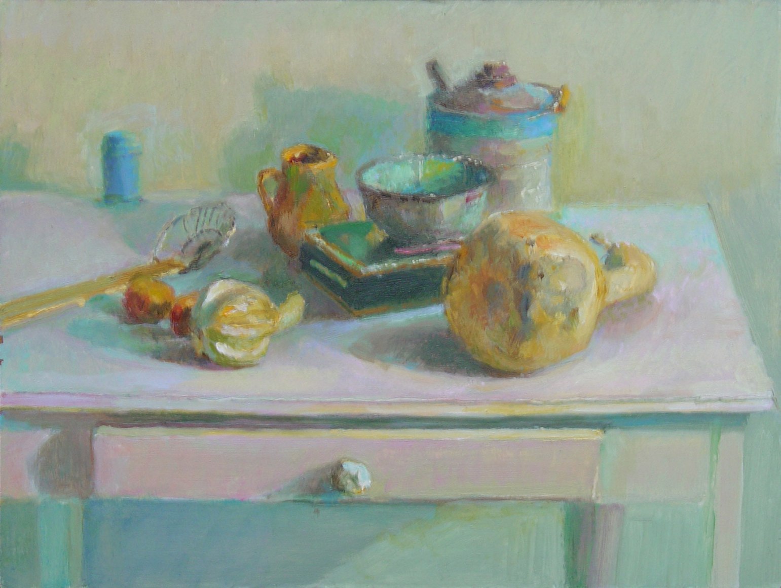 Table with Blue Can and Gourds