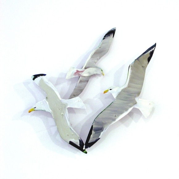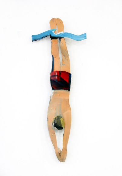 Tim Woodman’s aluminum cut-outs balance careful execution of form with a skillful ability to ascribe modeling through a few simple strokes. The episodic works deal with the observed world, sometimes humorously giving shape to a real-life vignette, at others deriving images from literary classics.