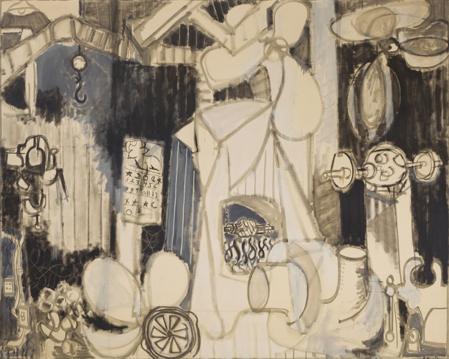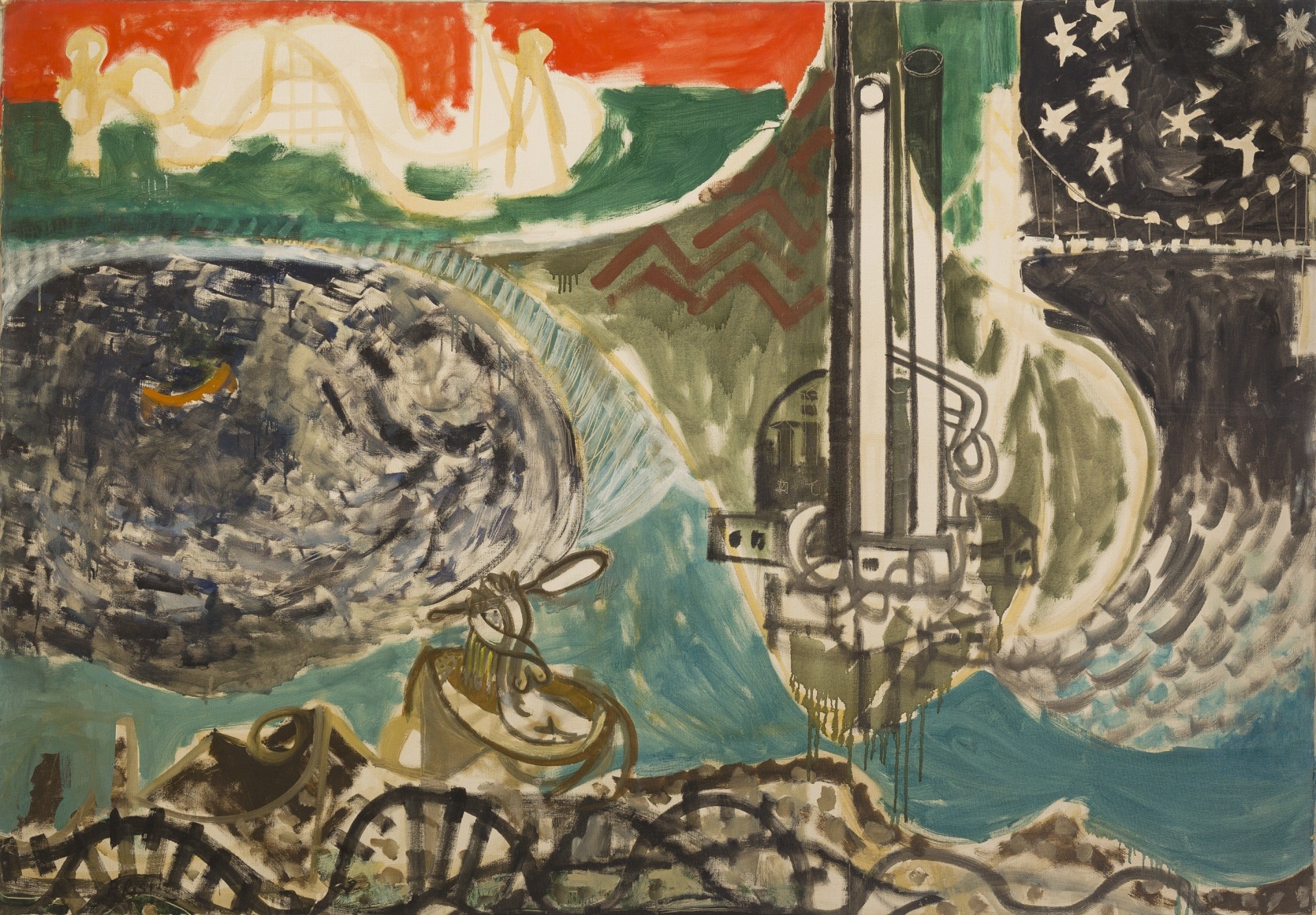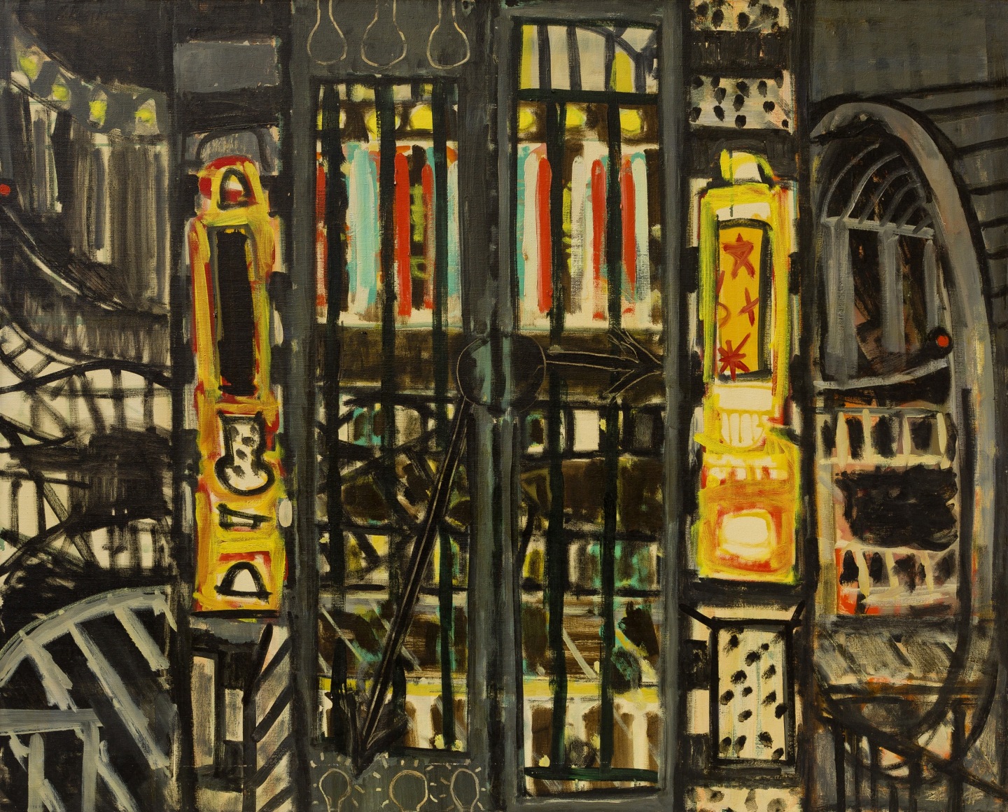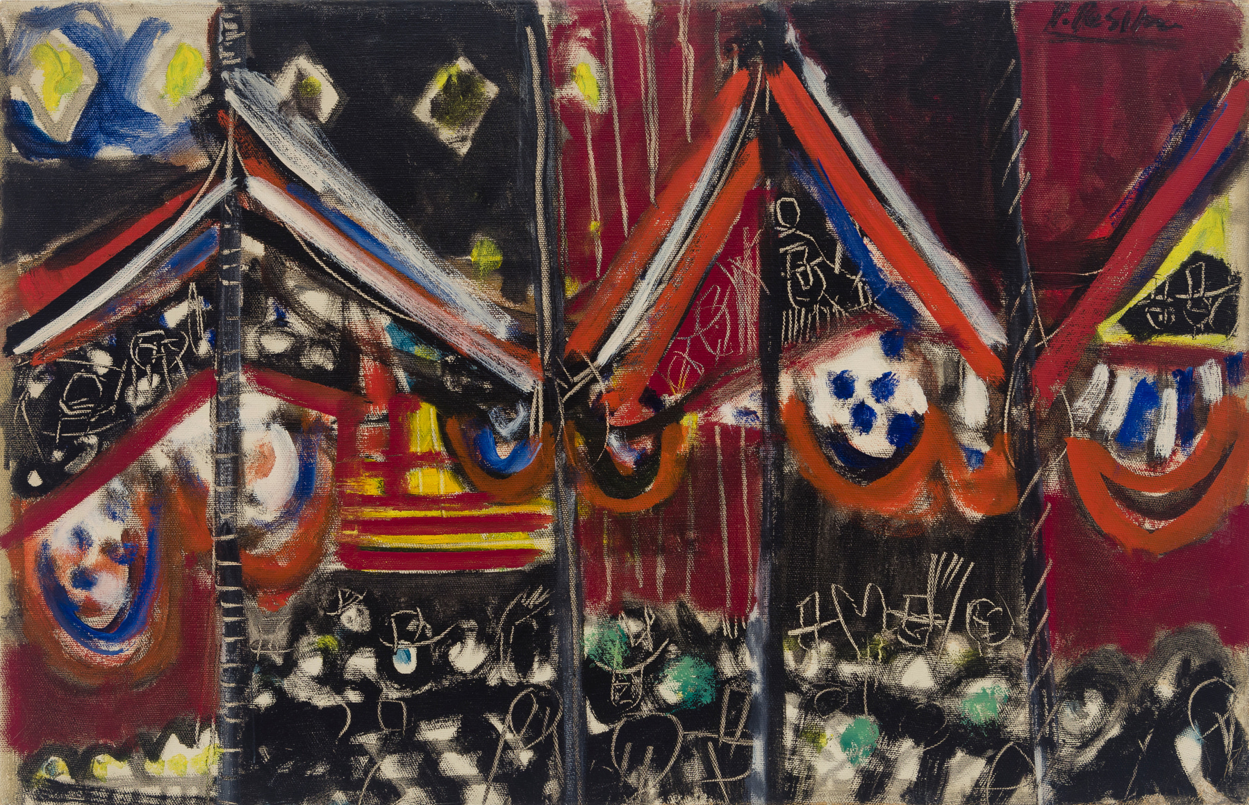 As the title suggests, the exhibition will be comprised of historic paintings from 1947-48, in which the artist sought inspiration from the world around him – studio tabletop tableaux, a mechanic's shop and even a local amusement park. Often blurring the lines between figurative and geometric abstraction, the canvases from this period are characterized by painterly brush strokes and expansive compositions, often broken into smaller geometric regions of color and pattern. Indeed, this work shows a stylistic likeness to members of the New York School, particularly the fragmented canvases of Adolph Gottlieb and the early work of Richard Pousette-Dart and Jackson Pollock.