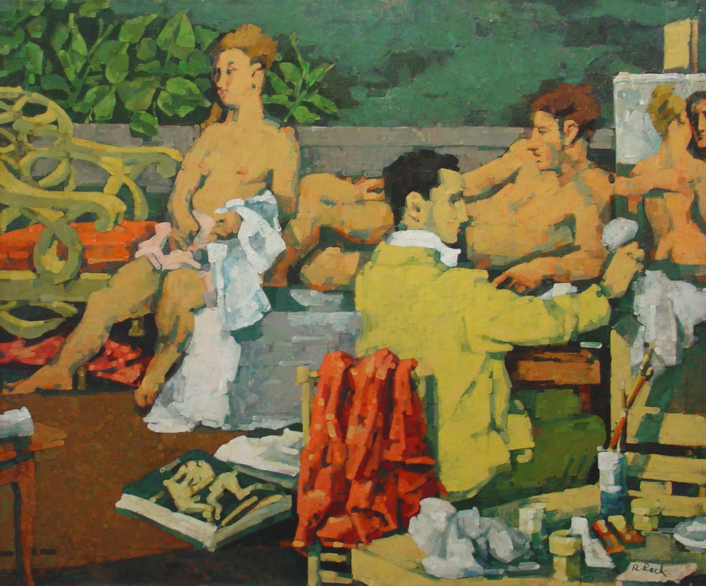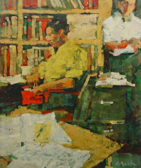 Rosemarie Beck [1923-2003] Studio with Lovers 1965-66 Oil on linen 50 x 60 inches (LBFA #1330)