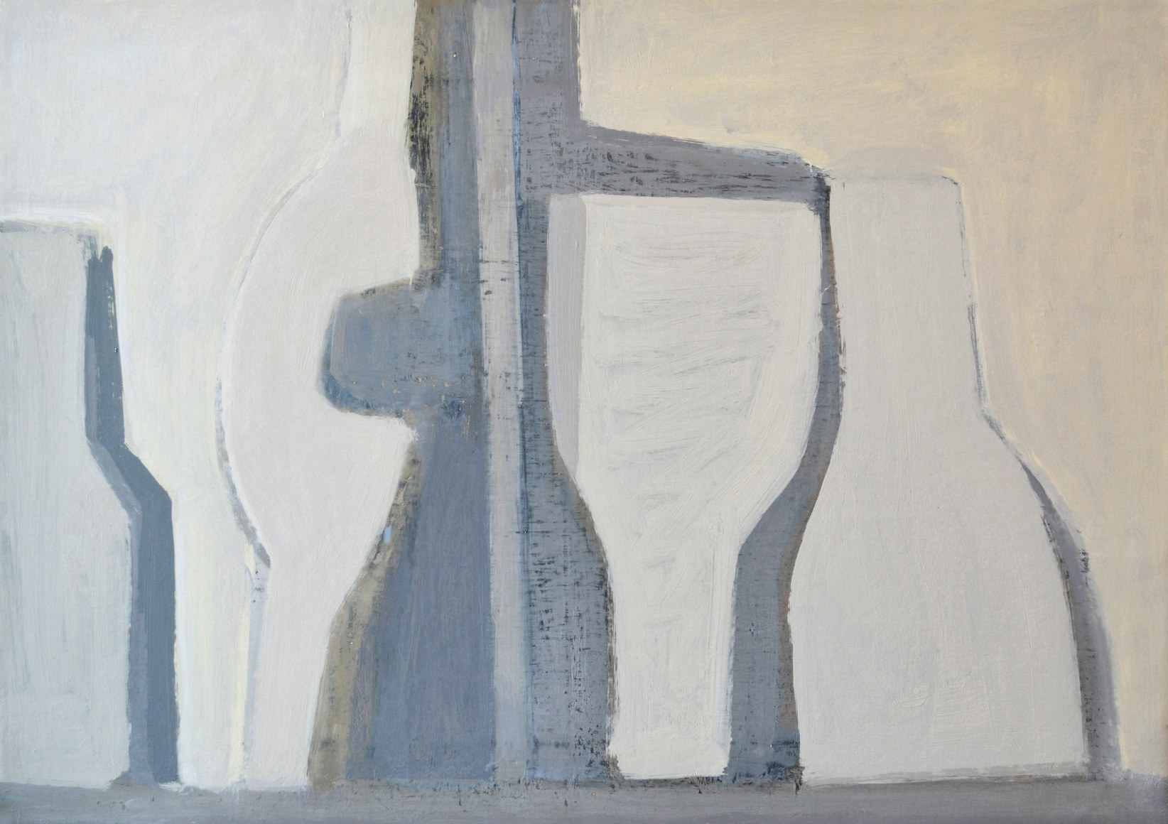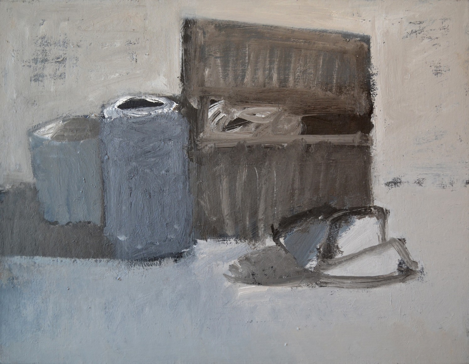 Susannah Phillips: New Work will also mark the debut of two new still life motifs. The first is a collection of rocks and other objects. A striking stone mosaic reveals a beautiful geometric checkerboard pattern, the angularity of which stands in sharp contrast to the otherwise organic form which contains it. The second still life depicts an arrangement of what appears to be the yokes and lee boards of a sailing canoe. Propped up on their ends, this composition typifies the artist’s tendency to paint objects that lose their functional purposes to become sculptural forms that invite meditation and contemplation. Phillips’s paintings are about restraint and more often than not, their meanings are not articulated by what is depicted, but rather by what is omitted.