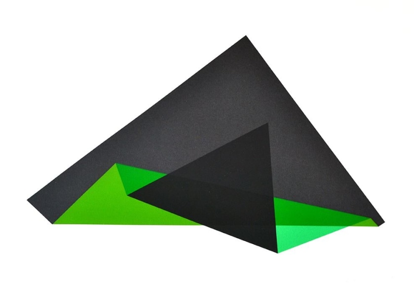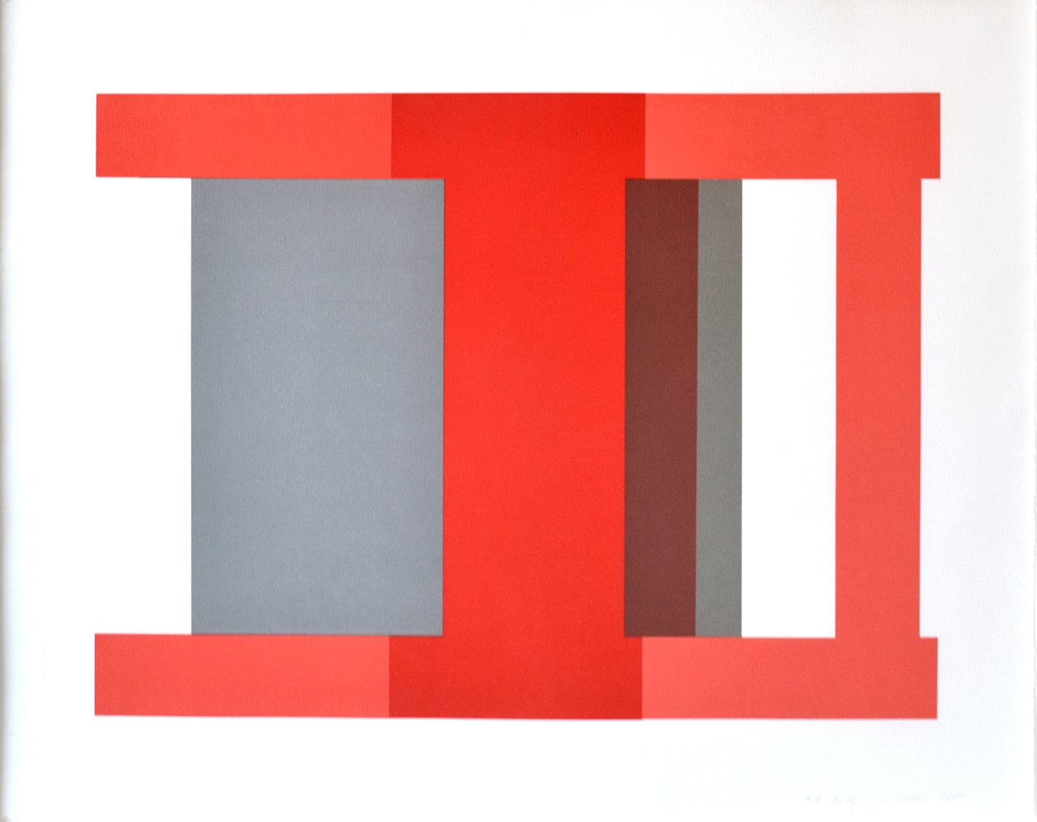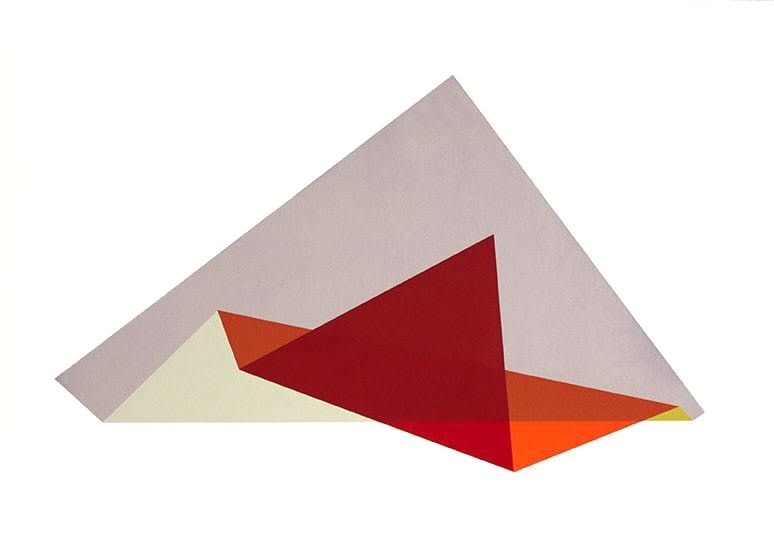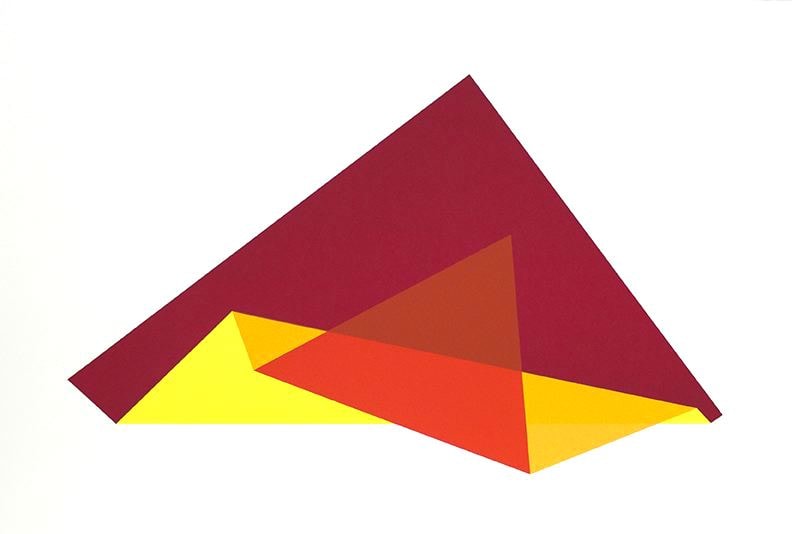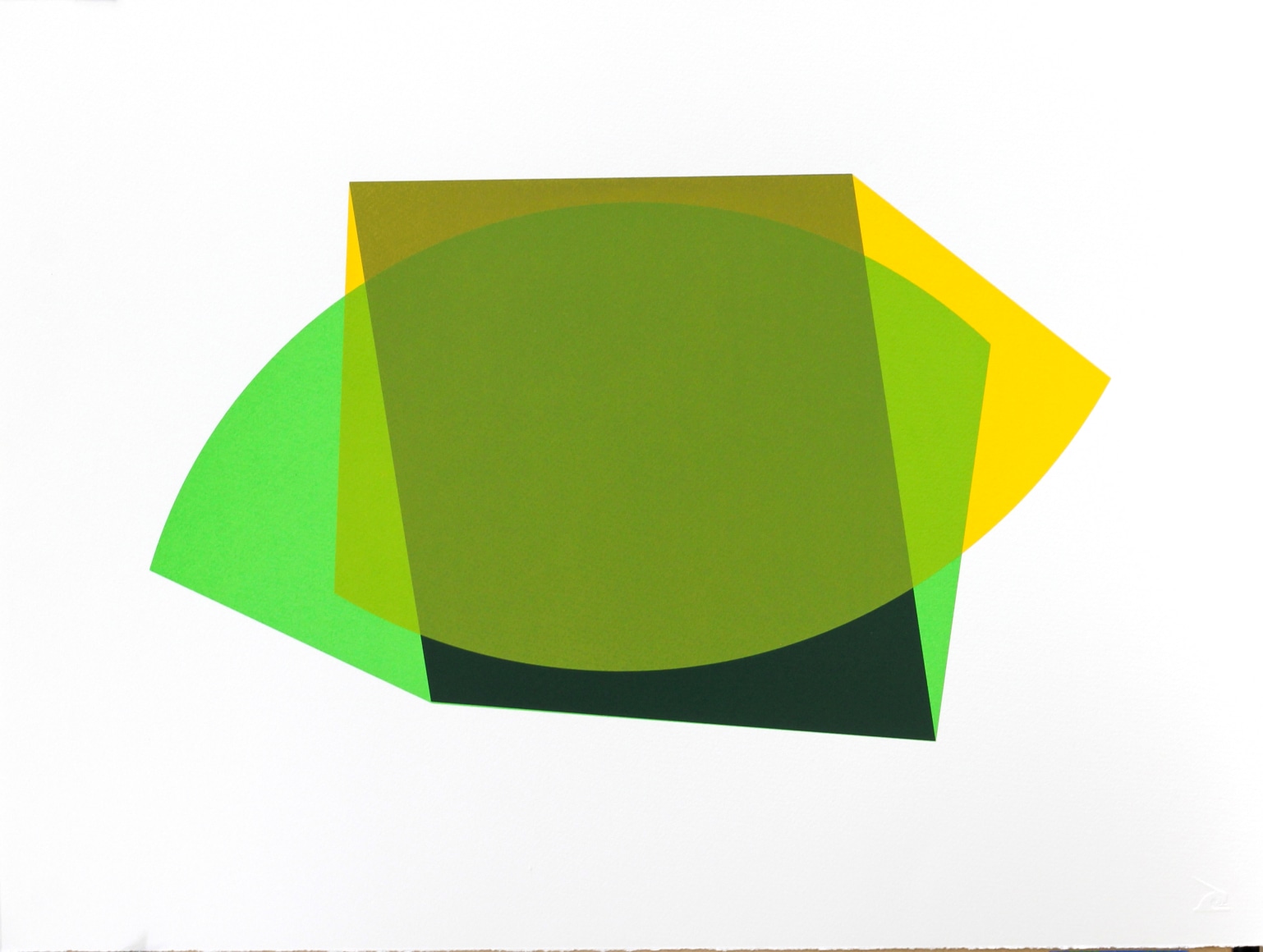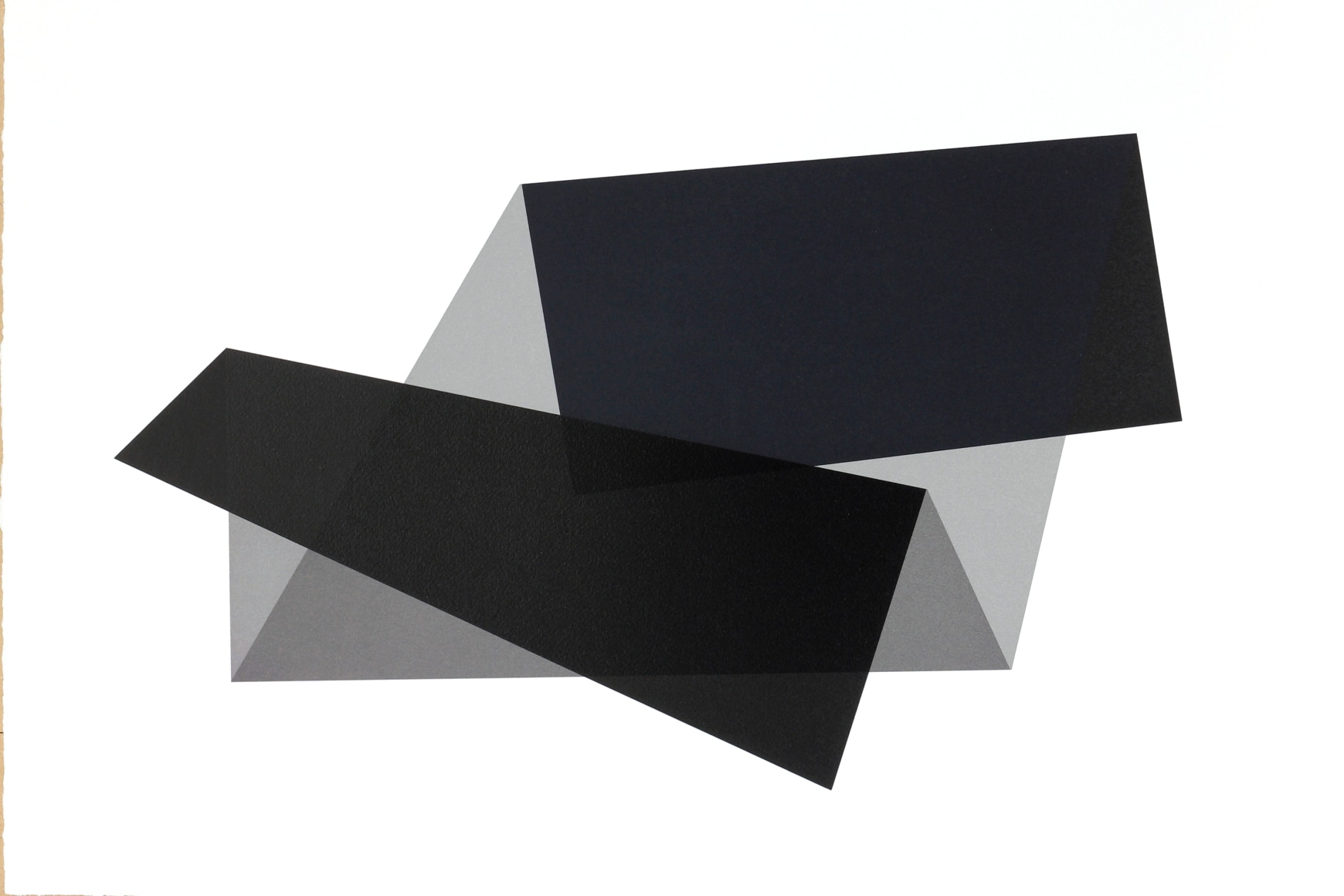 Boepple’s first monoprints, made with the master printer Kip Gresham in Cambridge, England were originally inspired by the artist’s resin sculptures. Layered shapes derived directly from the sculpture explored themes of layering and translucency. Over the last two years, Boepple’s imagery evolved into forms that fold over themselves, layering on one another, almost like origami. This theme developed a number of different formats that invite the viewer to draw associations to quotidian objects such as Band-Aids, envelopes, and tents.