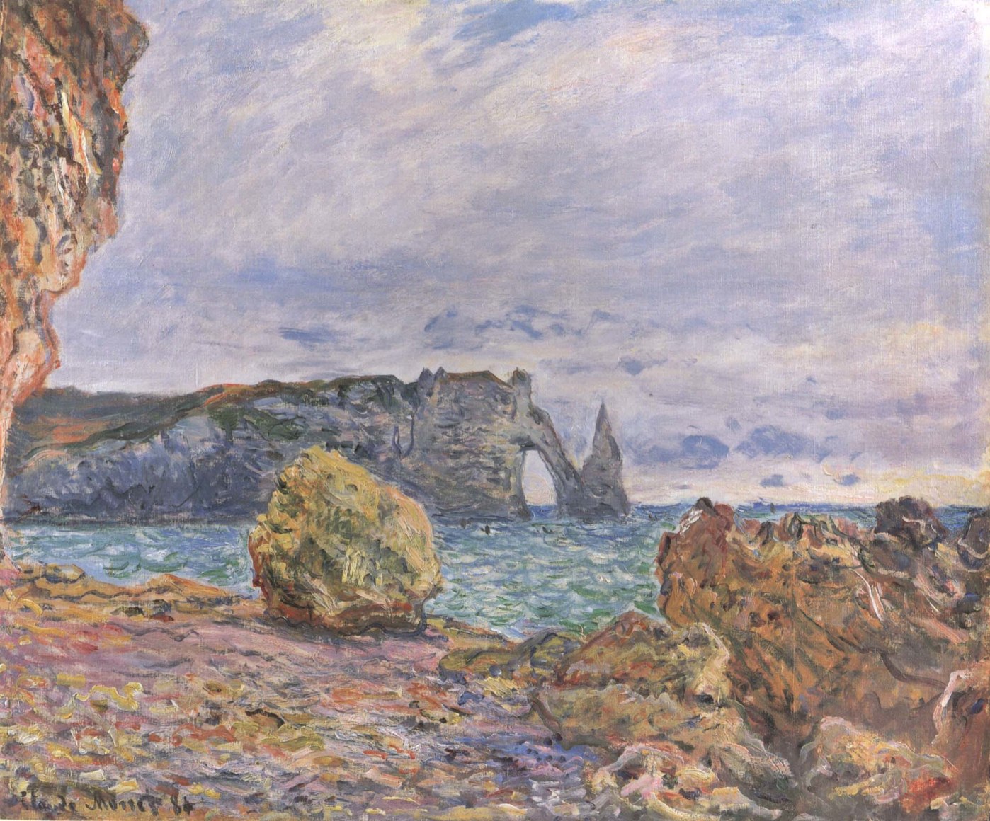 Claude Monet L'Euretat, la plage et la falaise d'Aval 1884 Oil on canvas 23.625 x 23.75 inches Signed and dated lower left "Claude Monet 84" SOLD