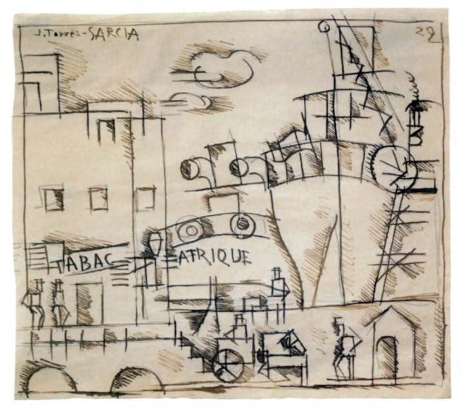Joaquín Torres-García Puerto Afrique 1929 Ink on paper 7.5 x 8.375 inches Signed "J. Torres-GARCIA" upper left, "29" upper right (BP#JT-8299)