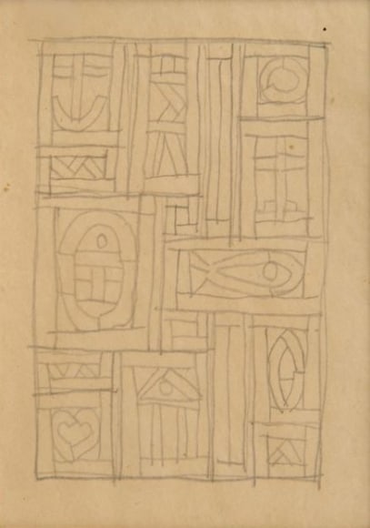 Joaquín Torres-García Constructivo con Pez 1932 Pencil on paper 8.375 x 5.75 inches (BP#JT-8297) SOLD