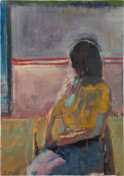 Signed "RD 58" lower left, Inscribed "R DIEBENKORN/1958/SEATED GIRL/WITH HEAD TURNED/5 [circled]" on reverse