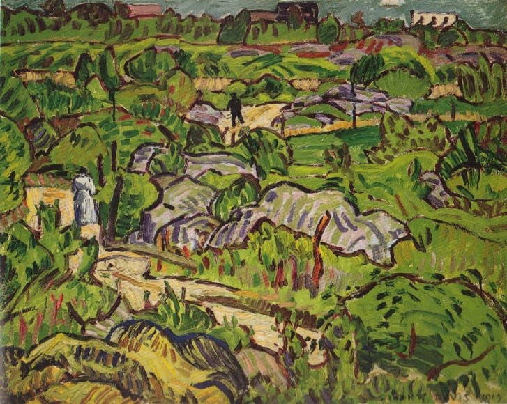 Signed and dated lower right: "STUART DAVIS 1919"; signed, dated and inscribed verso: "STUART DAVIS / 1919 / Gloucester Mass"