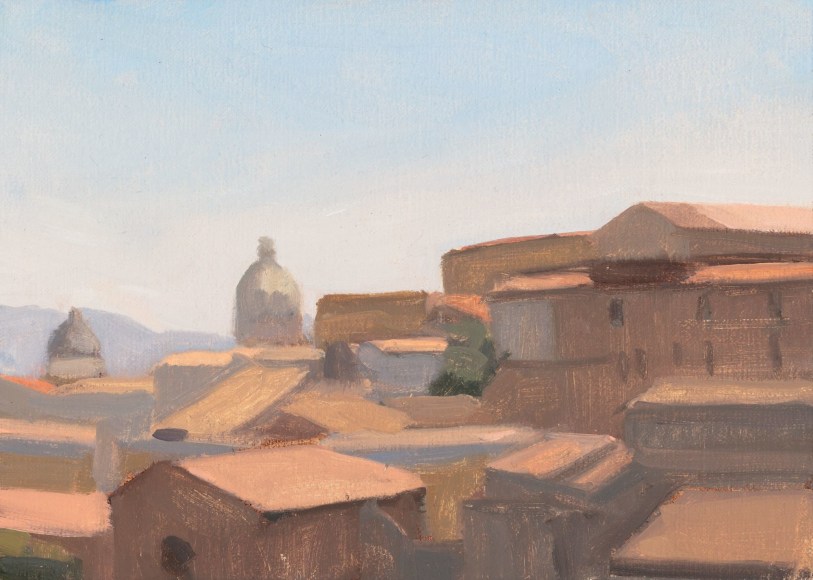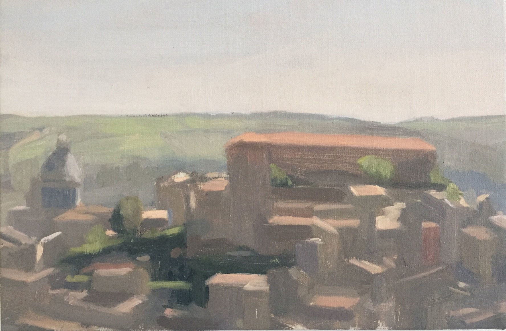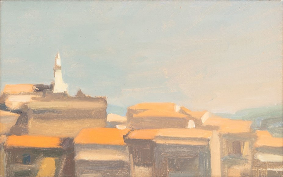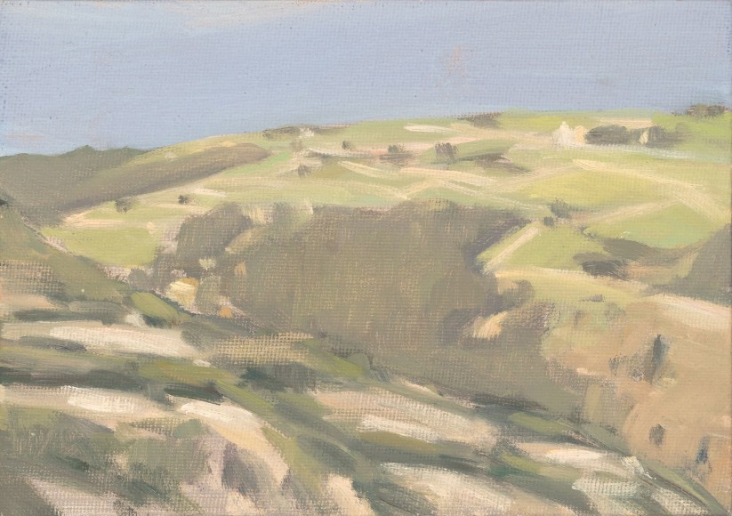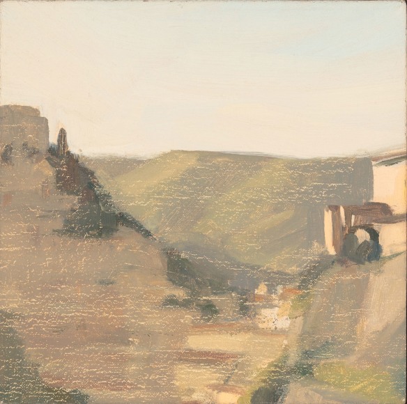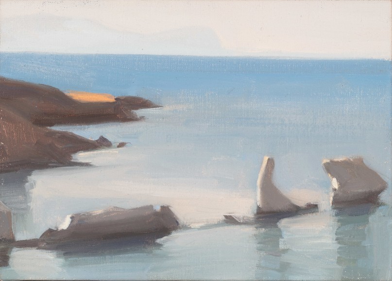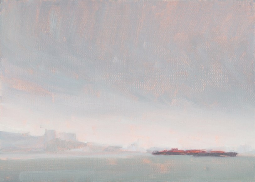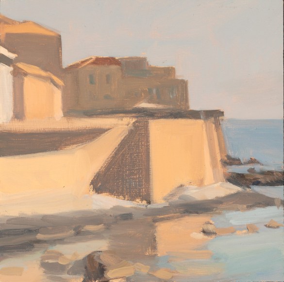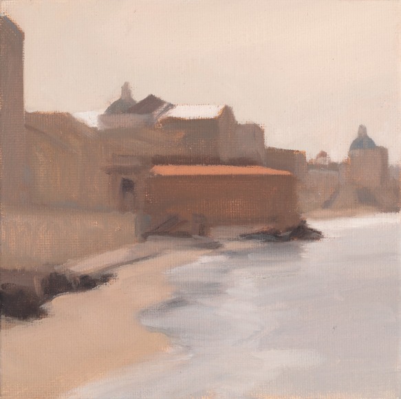 This exhibition will feature over twenty small paintings executed by the artist over the last three years. Working in sizes of only a few inches in each direction (6 x 6 inches, 5 x 7 inches) the paintings are all created on-site. The locations of these paintings range from the Brooklyn waterfront and the channels of Bayonne, NJ, to the rocky coastline and rolling hills of the small towns of Sicily. Whatever her subject matter, the artist is able to capture a serene, often ethereal, moment in time. Indeed, the paintings of barges creeping along the East River into port are able to slow down time in the same way the canvases from Sicily are able to capture the fleeting moments of Mediterranean sun bathing the hills of Ragusa. Horowitz’s soft geometry, keen sense of color and innate sense of light work together harmoniously in these small but impactful works.