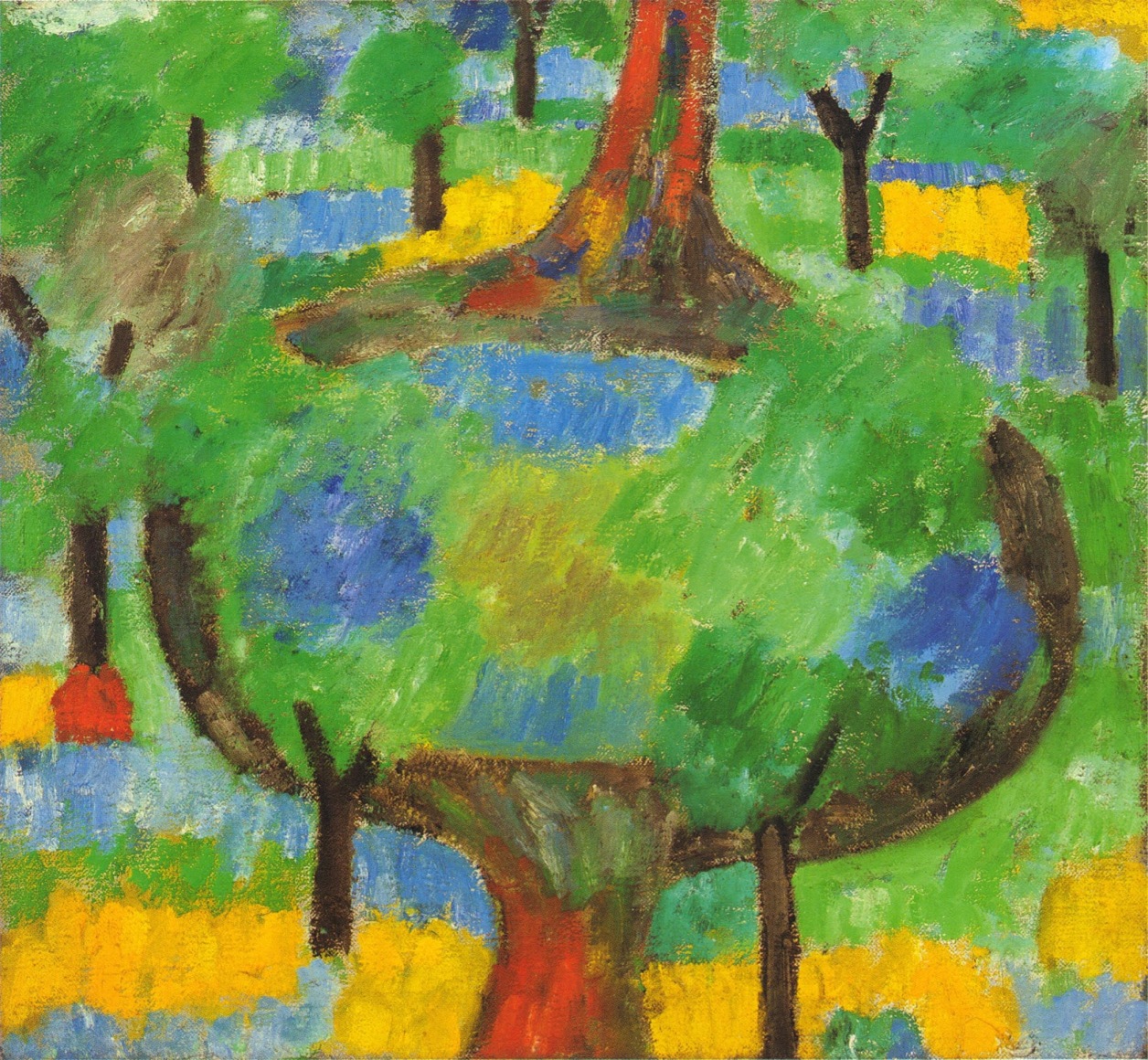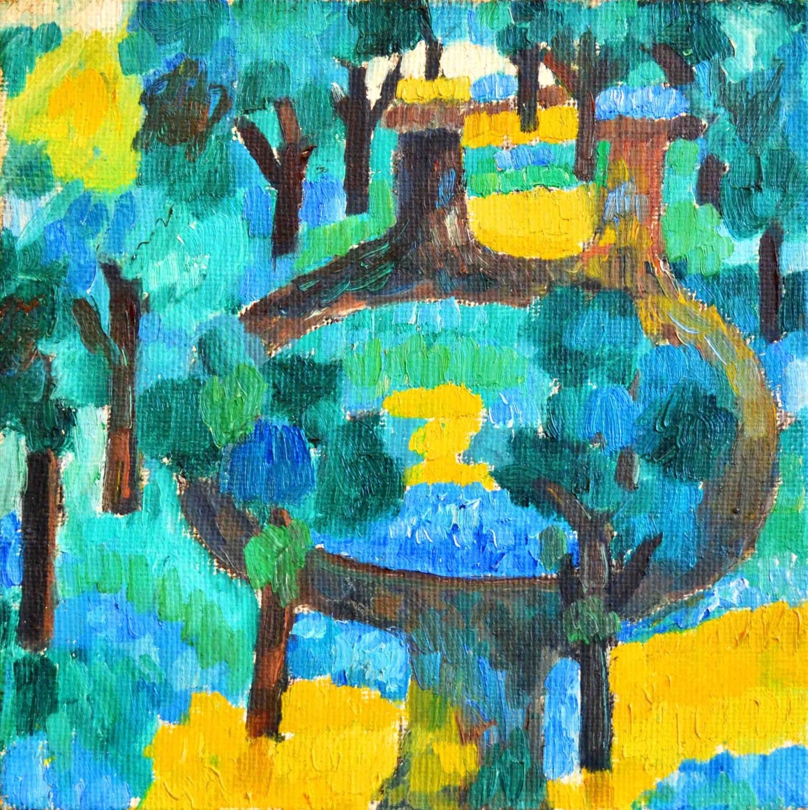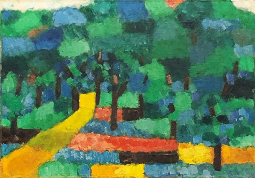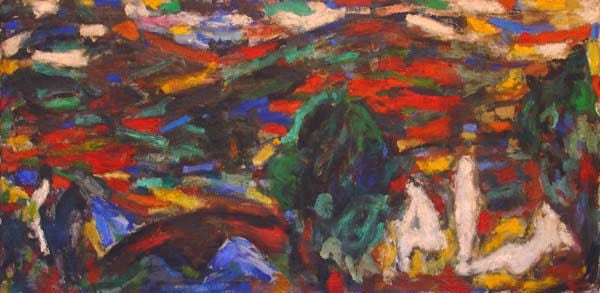Painted predominately in the penultimate years of Müller’s lifetime - the artist died in 1957 – the “path” paintings represent an attempt to introduce symbolic content into the unpopulated landscape. The art historian Martica Sawin explains: “double or single paths, each dividing to leave a circular island and coming together to reach an eventual impasse, or simply traveling straight up from the lower edge of the canvas to become abruptly blocked, are seen as two-dimensional shapes against a receding landscape. Apparently for him these paths were equated with vision, which has its limits of penetrations and which likewise may operate in perspective that is at variance with pragmatic experience; they also might describe an agoraphobic complex or refer to his own mortal intimations, for he lived constantly with the sound of the artificial valve in his heart which marked his lifebeat.” [1] Indeed, the shape of the path paintings seem to resemble heart valves themselves. The circular path paintings lead to nowhere, thus evoking unachievable goals and deceptive paths of attainment.