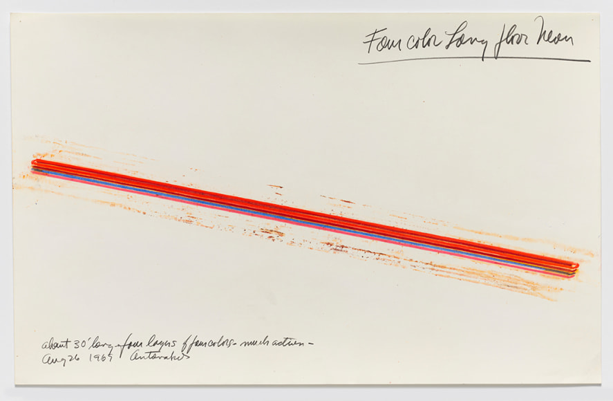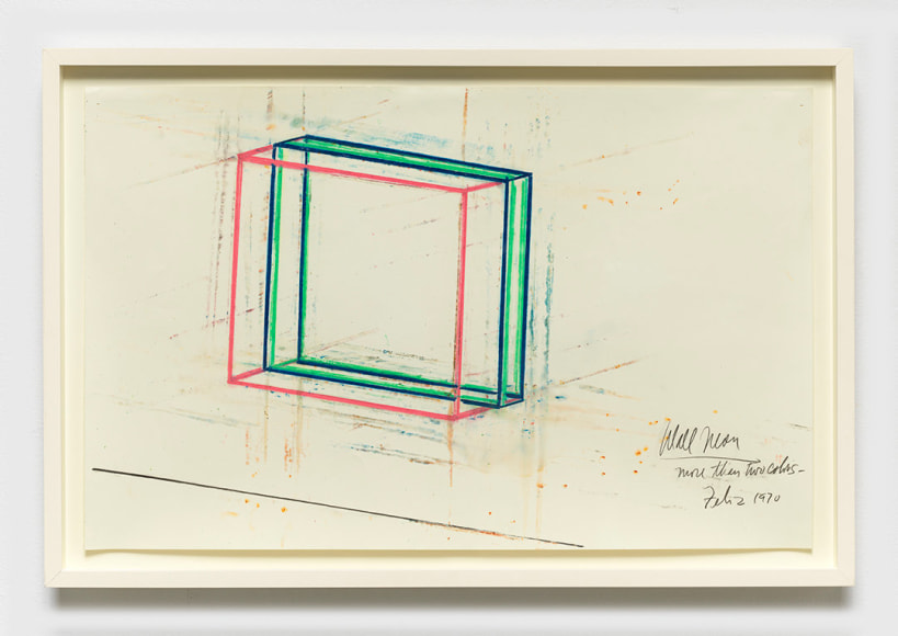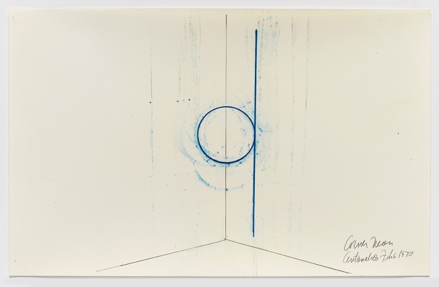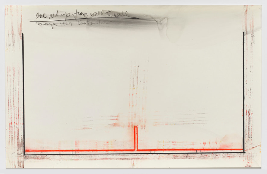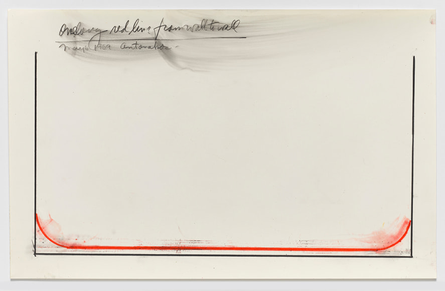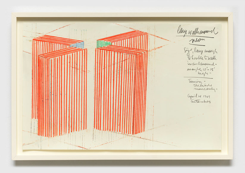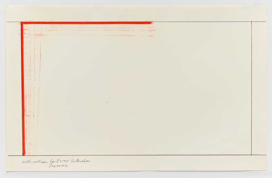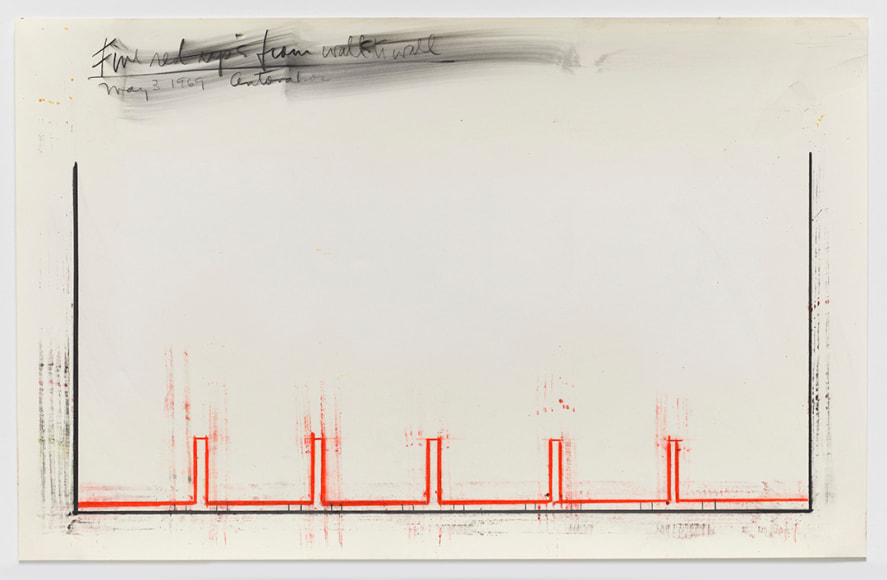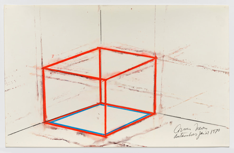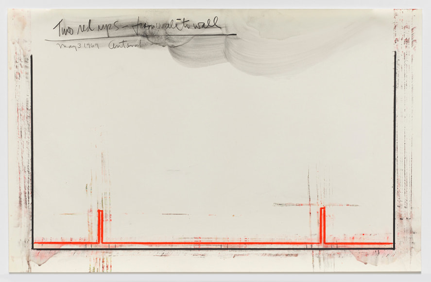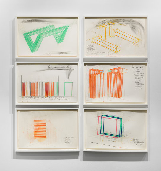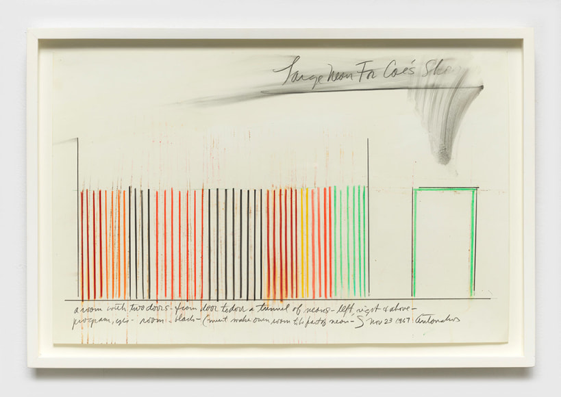 The exhibition offers approximately 50 Project Drawings and one model for a red and yellow Neon Wall from c. 1967.