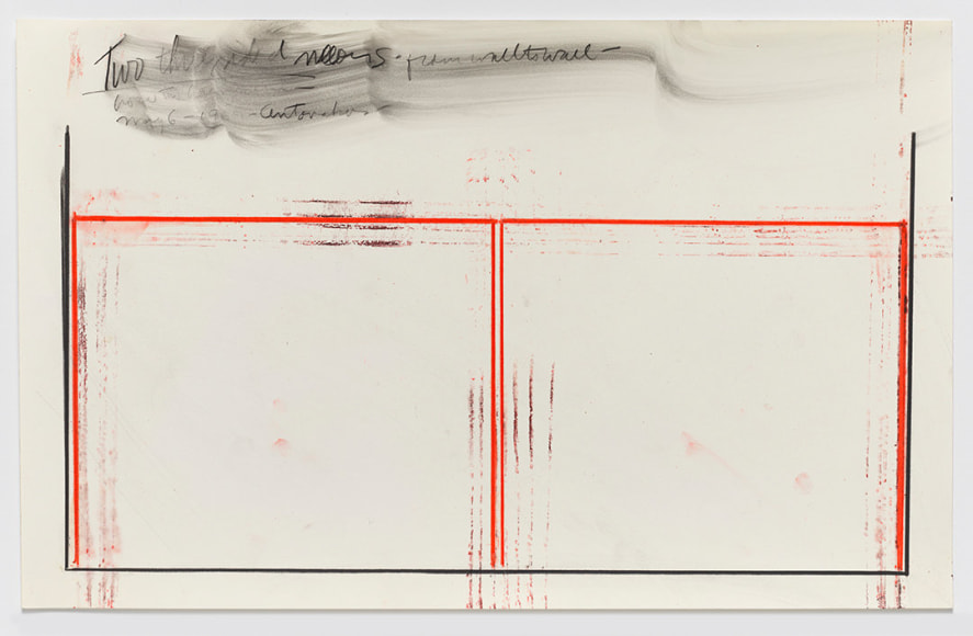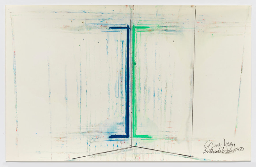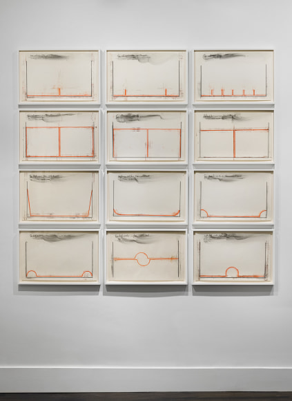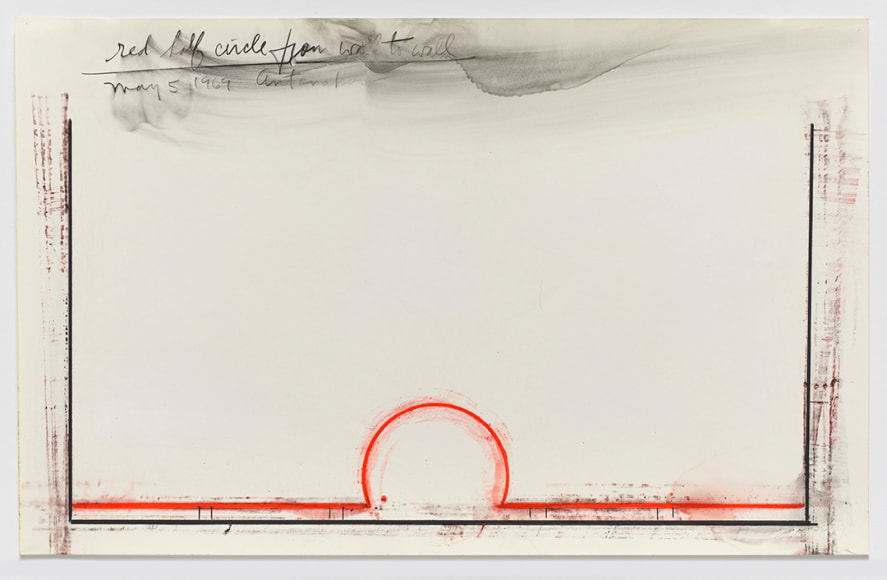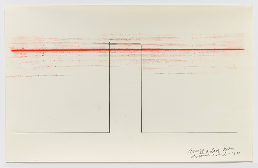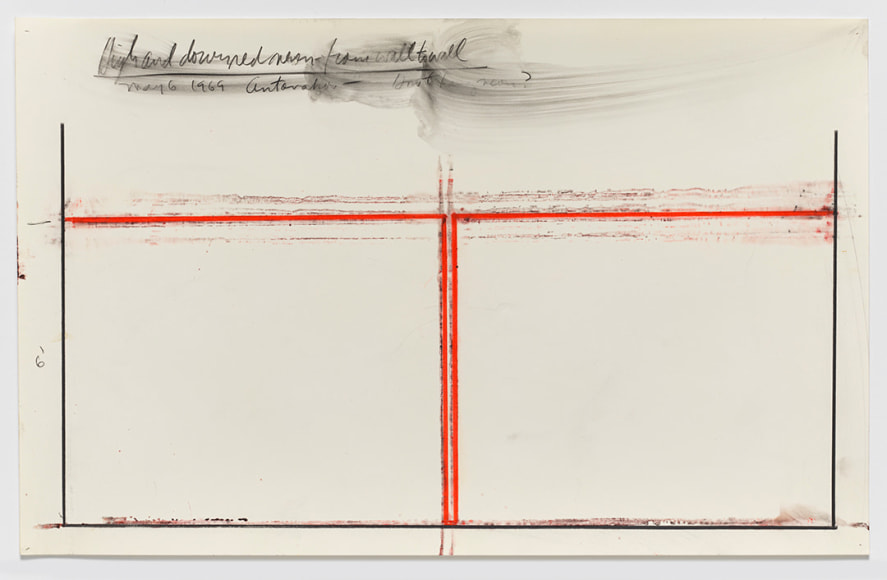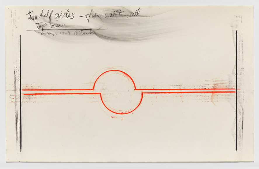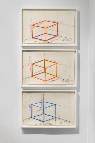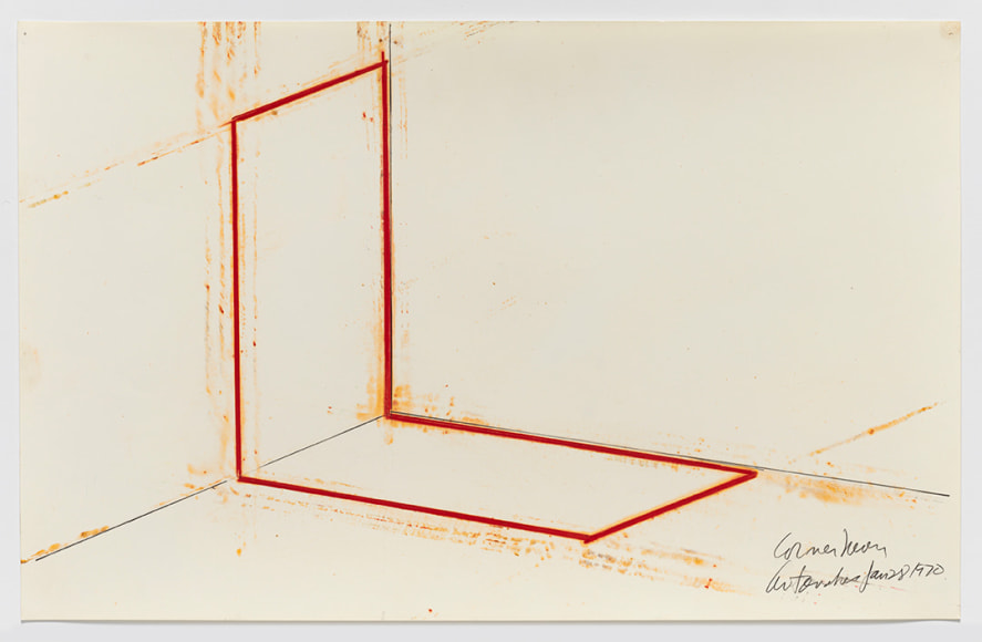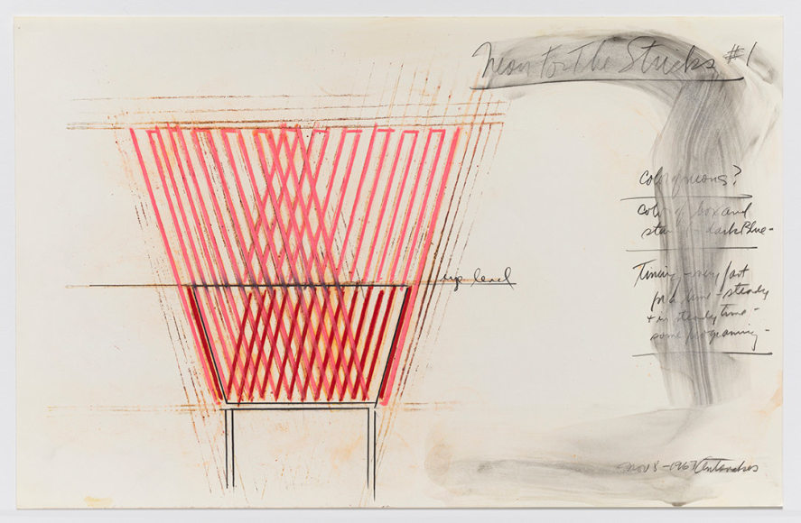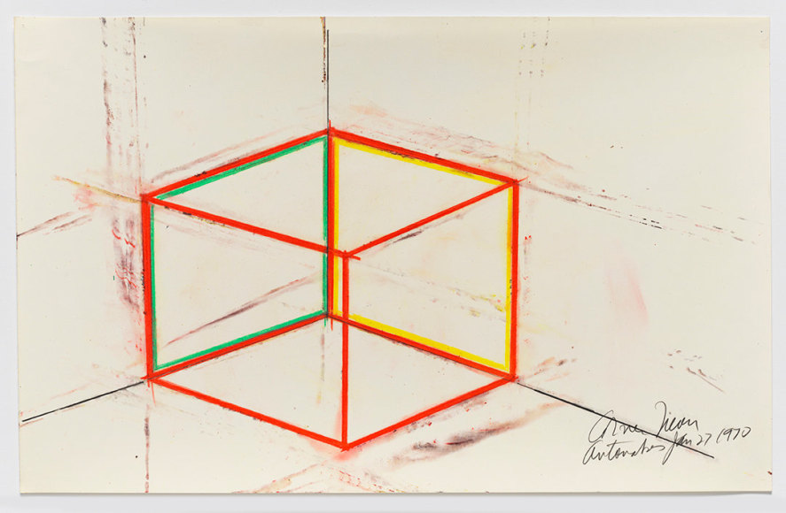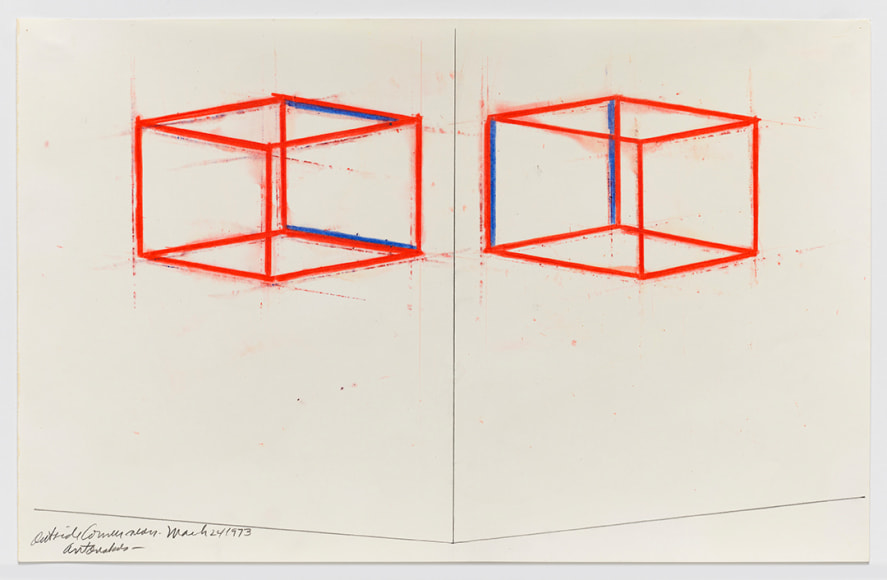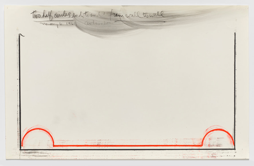 The exhibition offers approximately 50 Project Drawings and one model for a red and yellow Neon Wall from c. 1967.