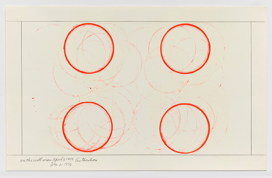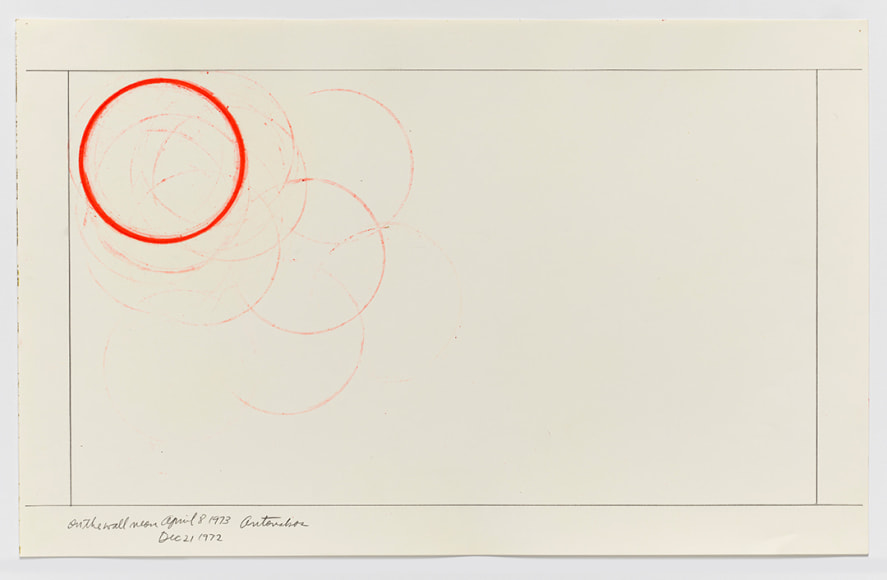 Sometimes many drawings were made in a single day or through a sequence of days. Often these motifs become increasingly spare, sheet after sheet. At other times, there was just a single manifestation of a formal idea. The series continued with the same energy and invention for 8 ½ years. As Antonakos said, “Only drawing can keep up with your mind."