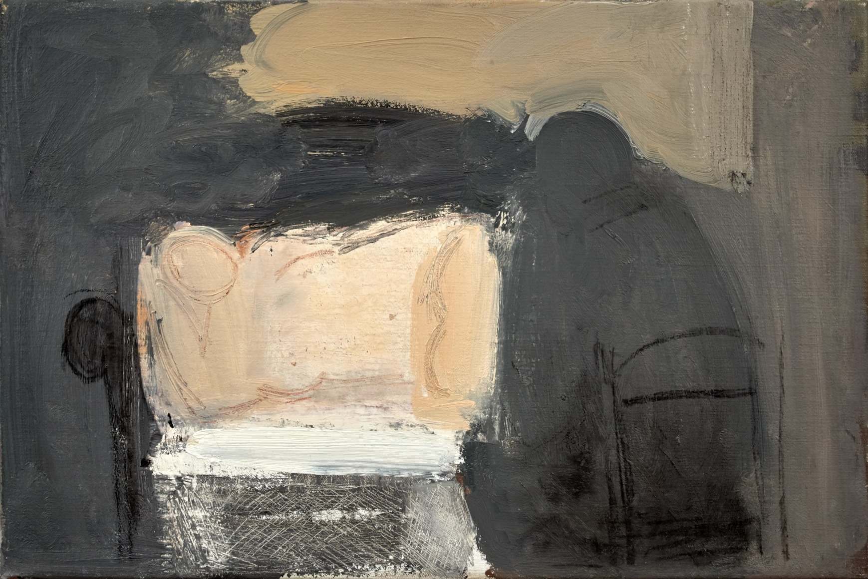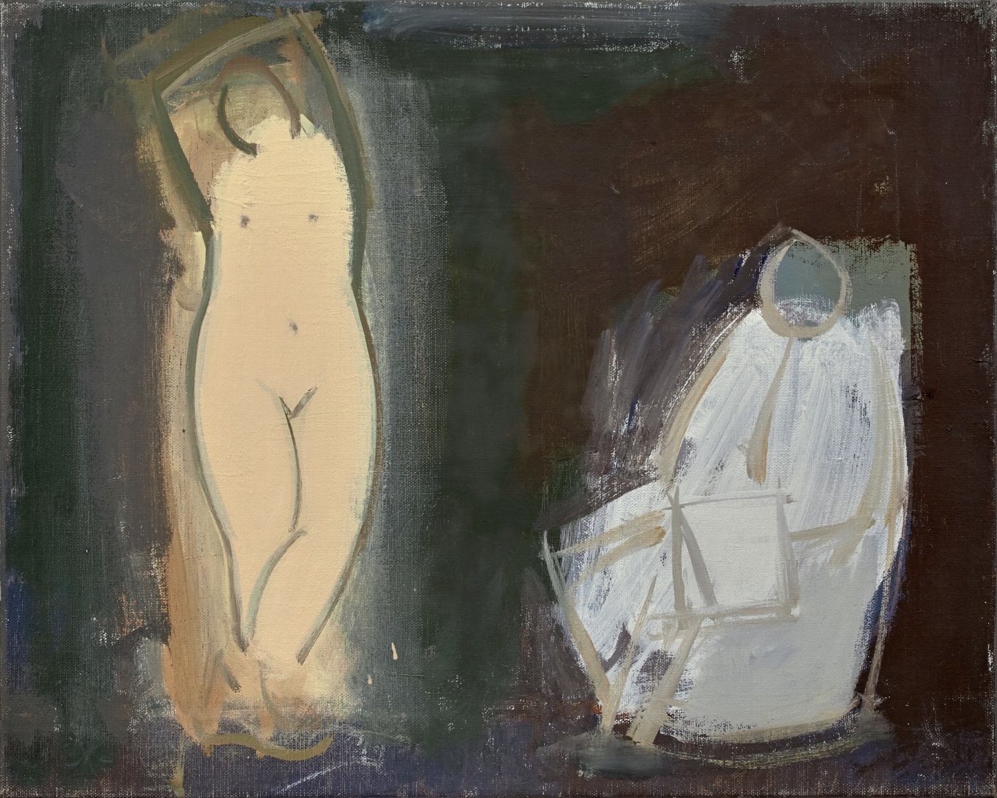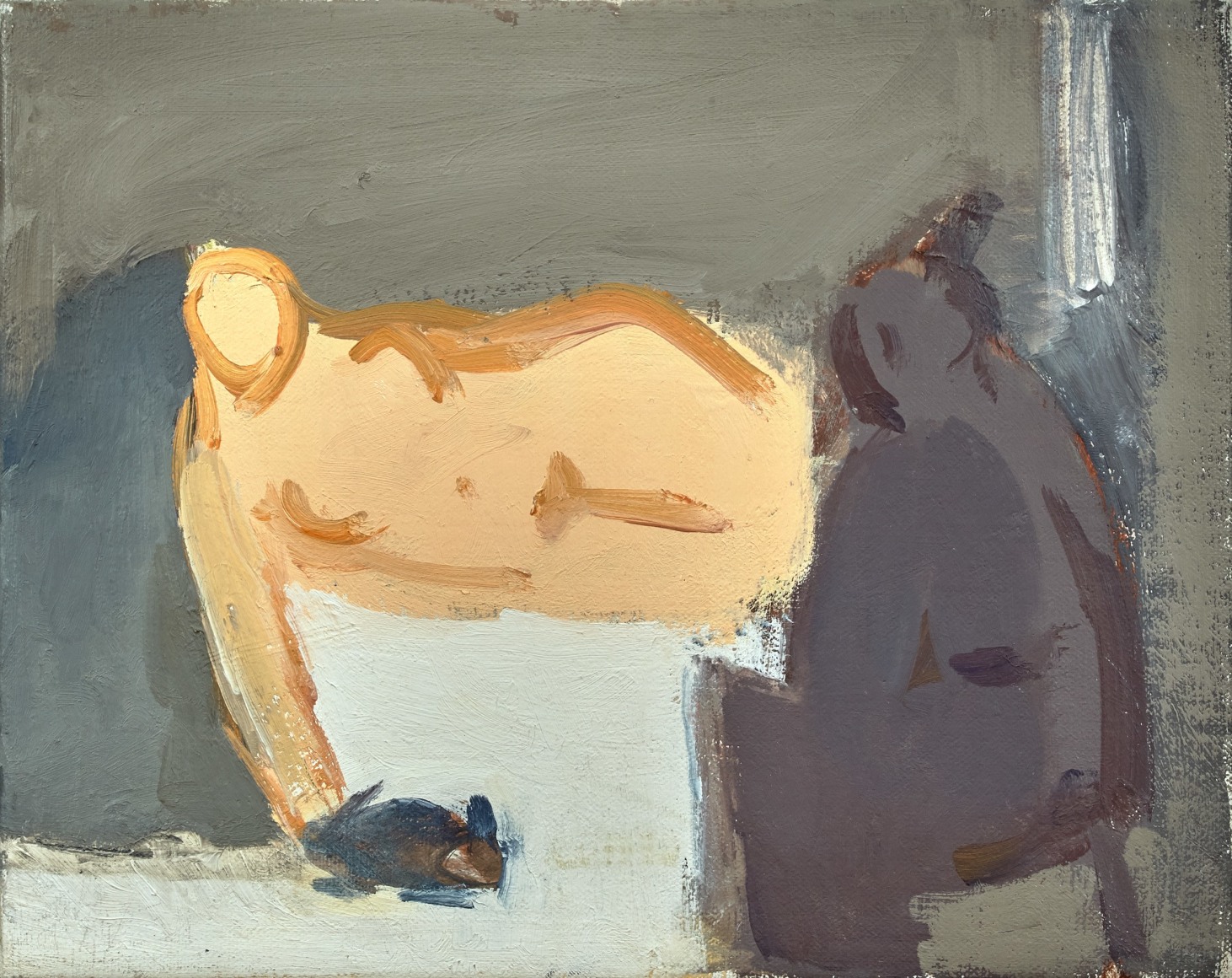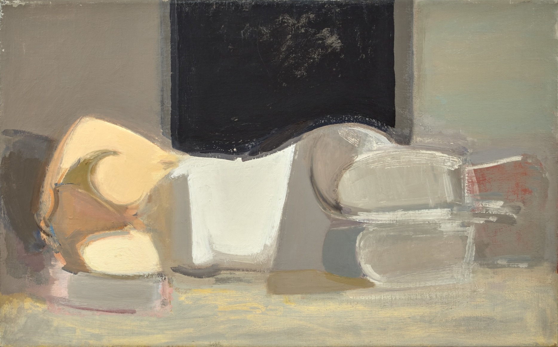 For the next eight years, Allison came to the studio roughly once a week. Their deepening trust and friendship was reflected in Phillips’ treatment of the subject, moving from early compositions which considered the figure – clothed - as a type of still life, to horizontal nudes in the tradition of the odalisque.