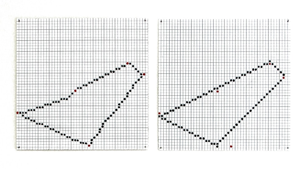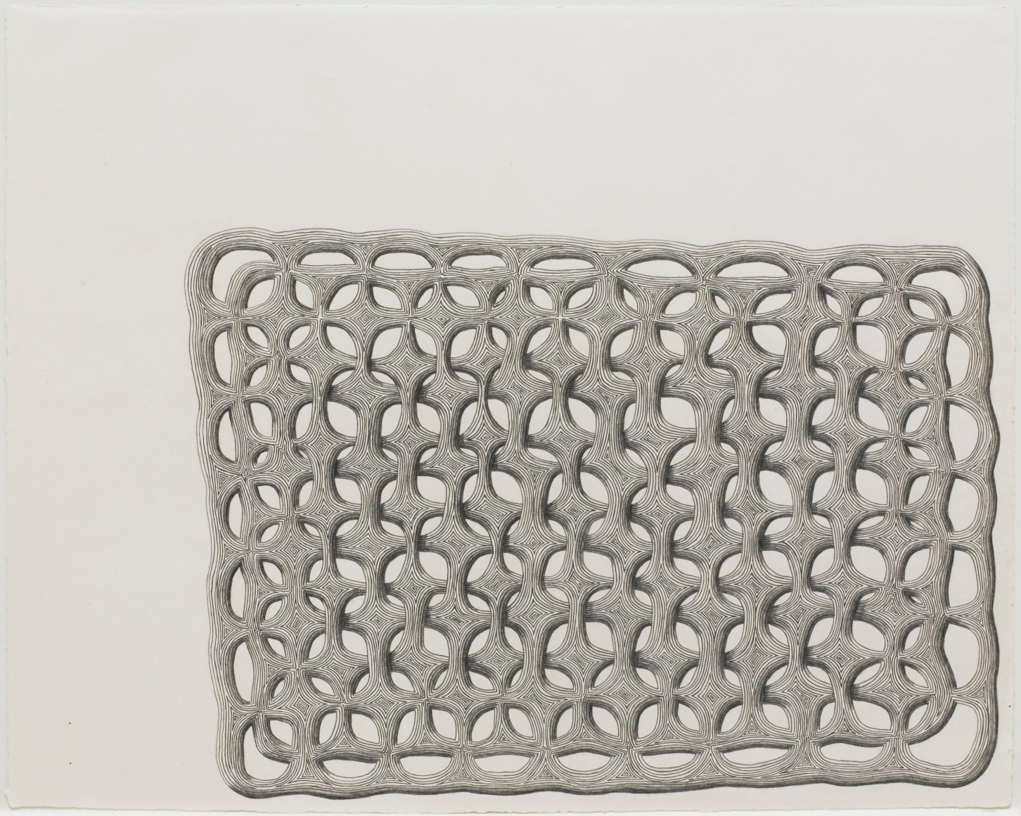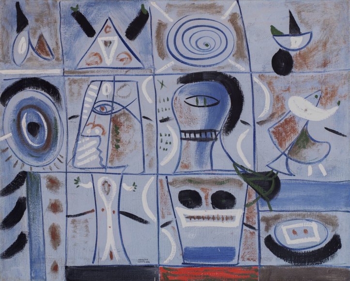 In some paintings, such as Joaquín Torres-García’s Constructive Painting (c. 1931) or Adolph Gottlieb’s Nostalgia for Atlantis (1944), the grid is used to compartmentalize the canvas into smaller rectangles that house pictograms and symbols. In this way, the grid operates as a place that combines both reading and looking. In other works, like Jennifer Bartlett’s Swimming Pool (Early 1970s), the grid (silkscreened onto the ground of the steel plate) intrinsically spaces and allocates the site in which she paints her dots as a kind of means to an end.